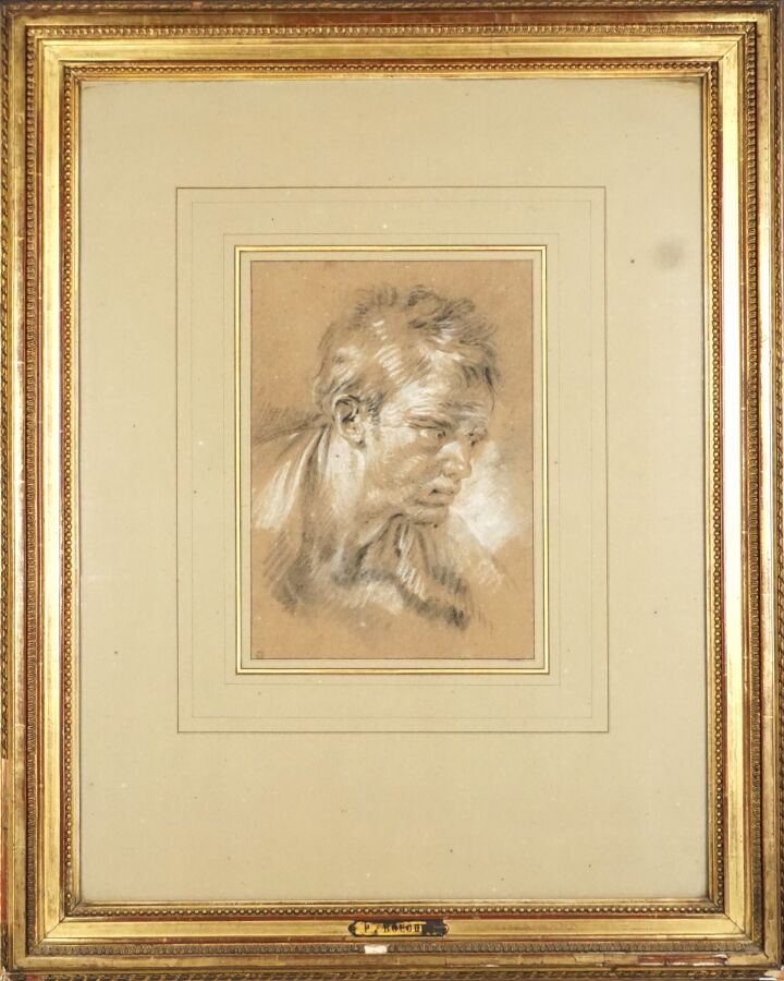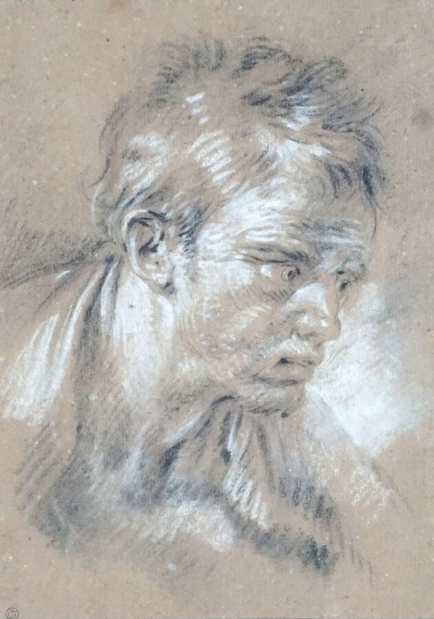 François BOUCHE (1924-2005), "Portrait d'homme", dessin au fusain et rehauts de craie blanche signé du cachet de l'artiste en bas à gauche, 27 x 19 cm (à vue).