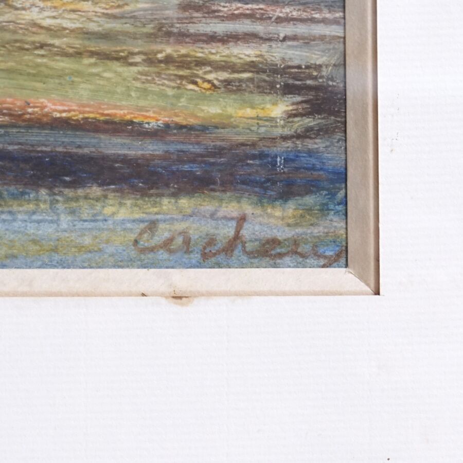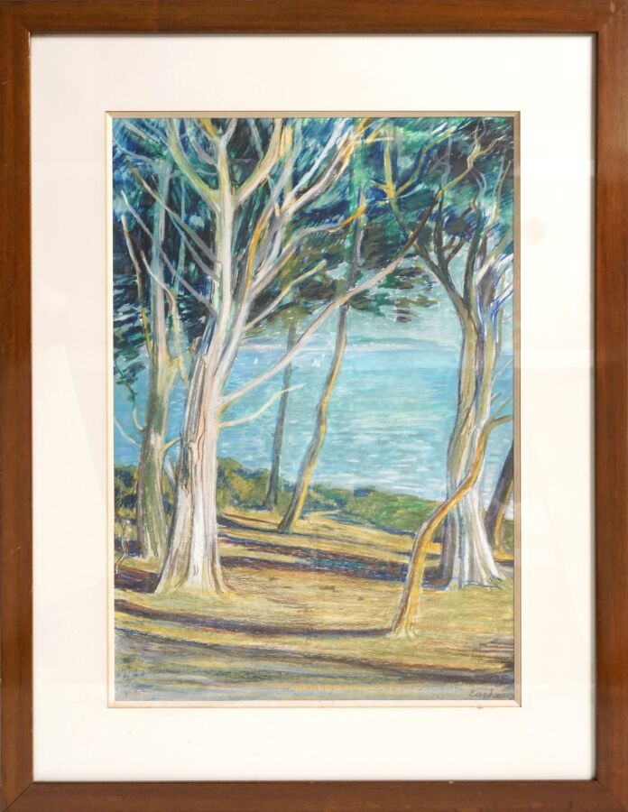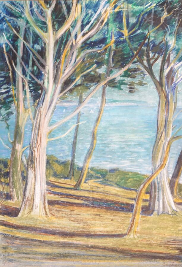 François CACHEUX (1923-2011) "Depuis le petit mont, la plage de Kerjouanno", pastel sur papier signée en bas à droite, 53 x 36 cm (à vue).