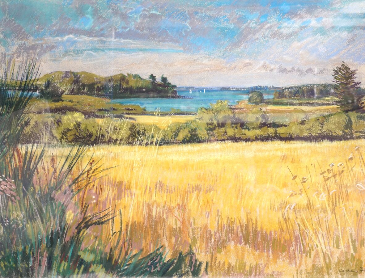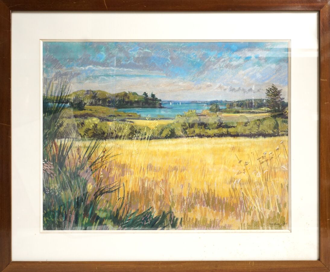 François CACHEUX (1923-2011), "Vue sur le Golfe du Morbihan" 1979, pastel sur papier signé et daté en bas à droite, 46.5 x 61.5 cm (à vue).