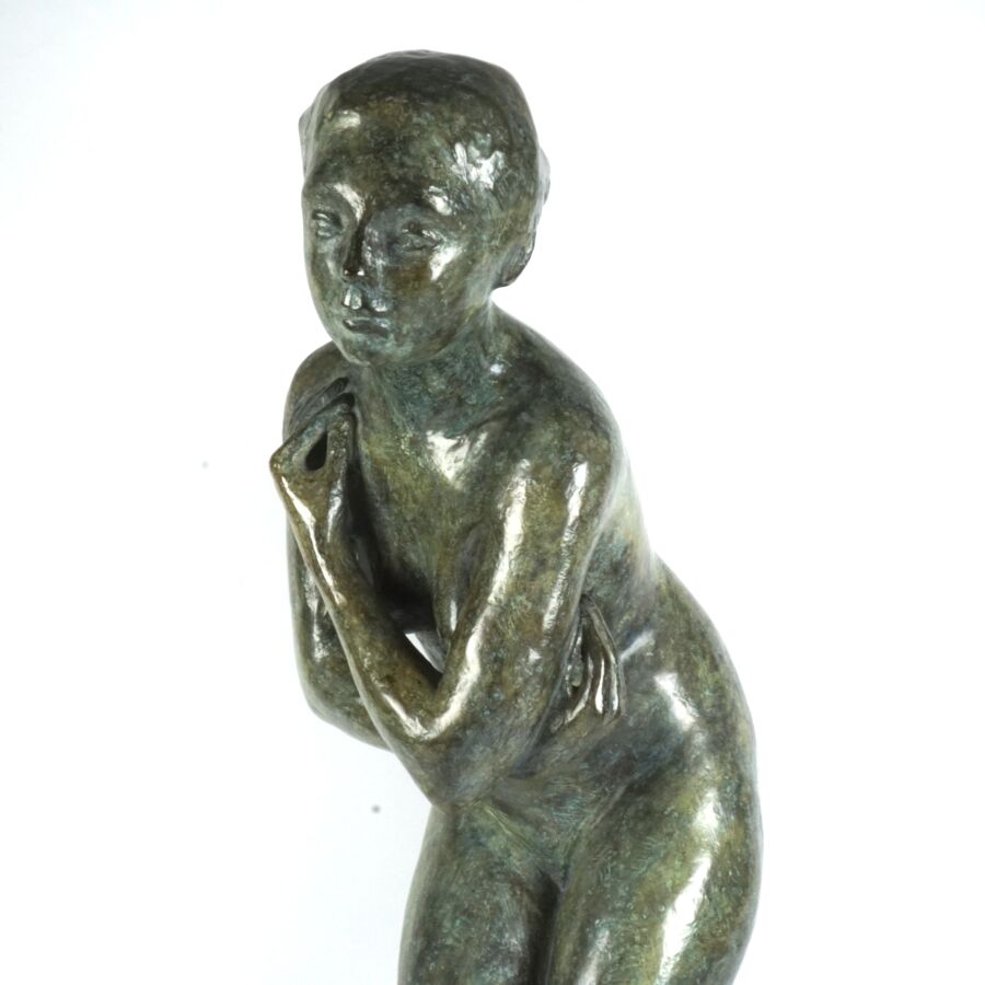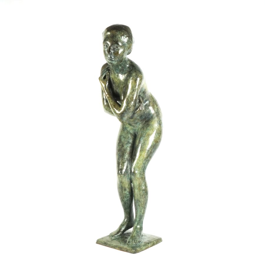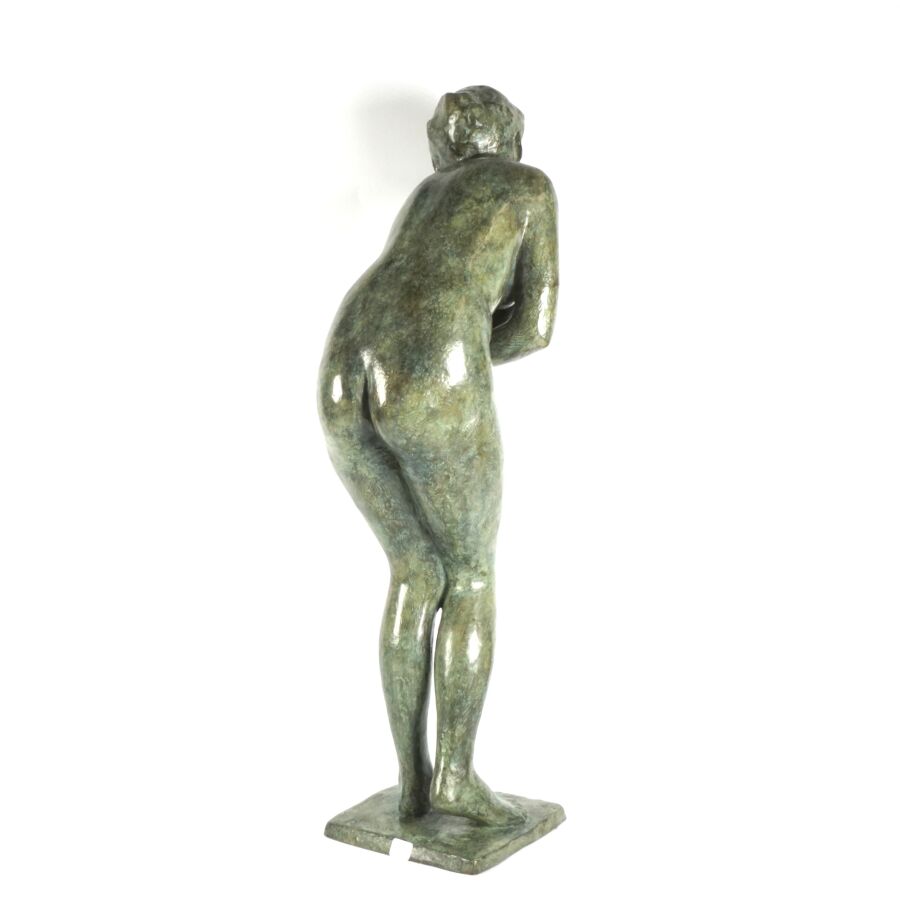Françoise NAUDET (1928-2008), "Femme debout", sculpture en bronze de patine verte nuancée bleue, numérotée 4/8, signée en creux, cachet de fondeur Delval, H. 73 cm.