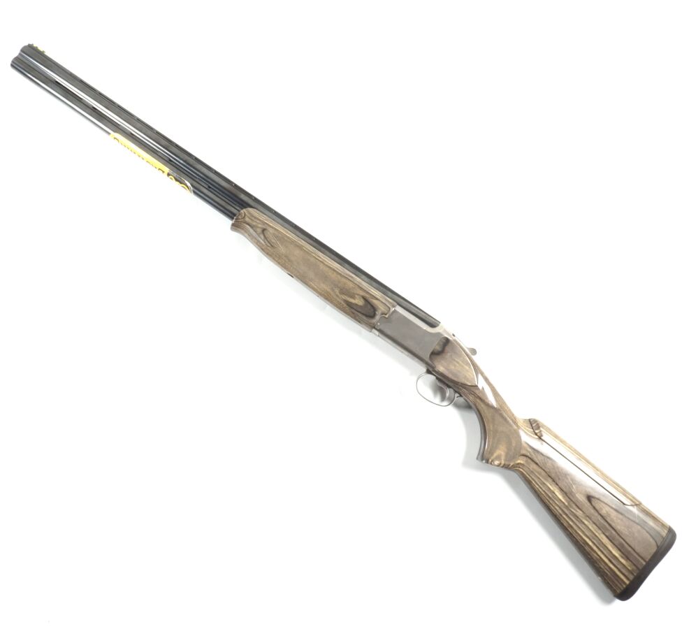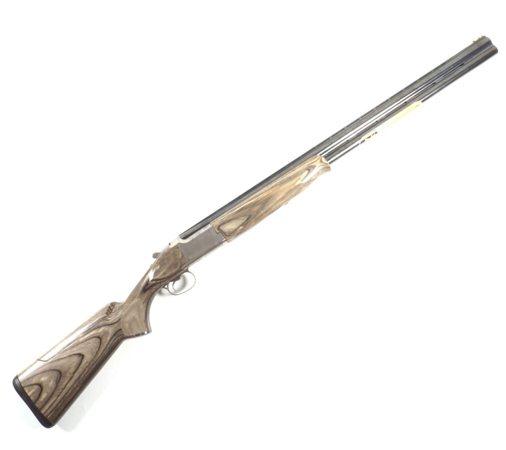 FUSIL DE CHASSE DE MARQUE BROWNING MODELE B525SL, calibre 12/76 à canons superposés bronzés à bande ventilée de 76 cm (reste étiquette Browning), extracteurs, mono détente, bascule en inox, crosse demi-pistolet en bois lamellé collé gris de 36 cm en partie quadrillée (petits chocs et rayures), appuie-joue ajustable, arme numéro BRJP59435YM131, catégorie C soumise à déclaration, mécanisme semblant fonctionnel, canons propres, longueur totale : 12 cm, BE/TBE.