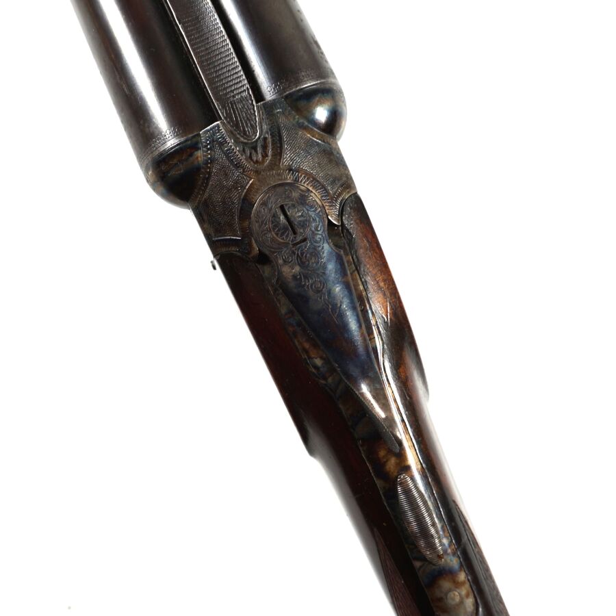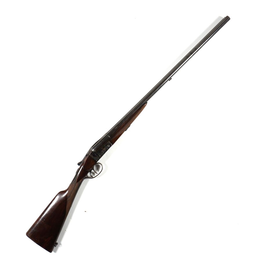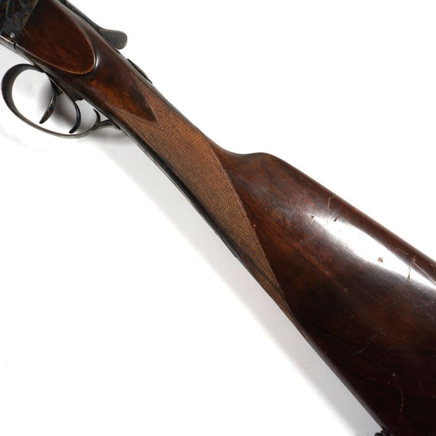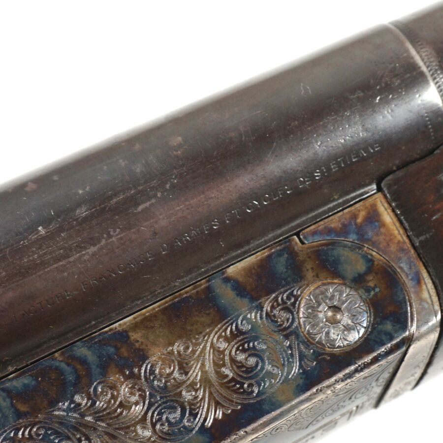 FUSIL DE CHASSE DE MARQUE MANUFRANCE SAINT-ETIENNE, MODELE ROBUST n°5, calibre 16/65 à canons juxtaposés de 69.5 cm (légères altérations), extracteurs, bascule entièrement jaspée, crosse anglaise en noyer en partie quadrillée de 35 cm (coups et enfoncements), arme numéro 50893, catégorie C soumise à déclaration, mécanisme semblant fonctionnel, canons piqués à nettoyer, longueur totale : 110.5 cm, BE.