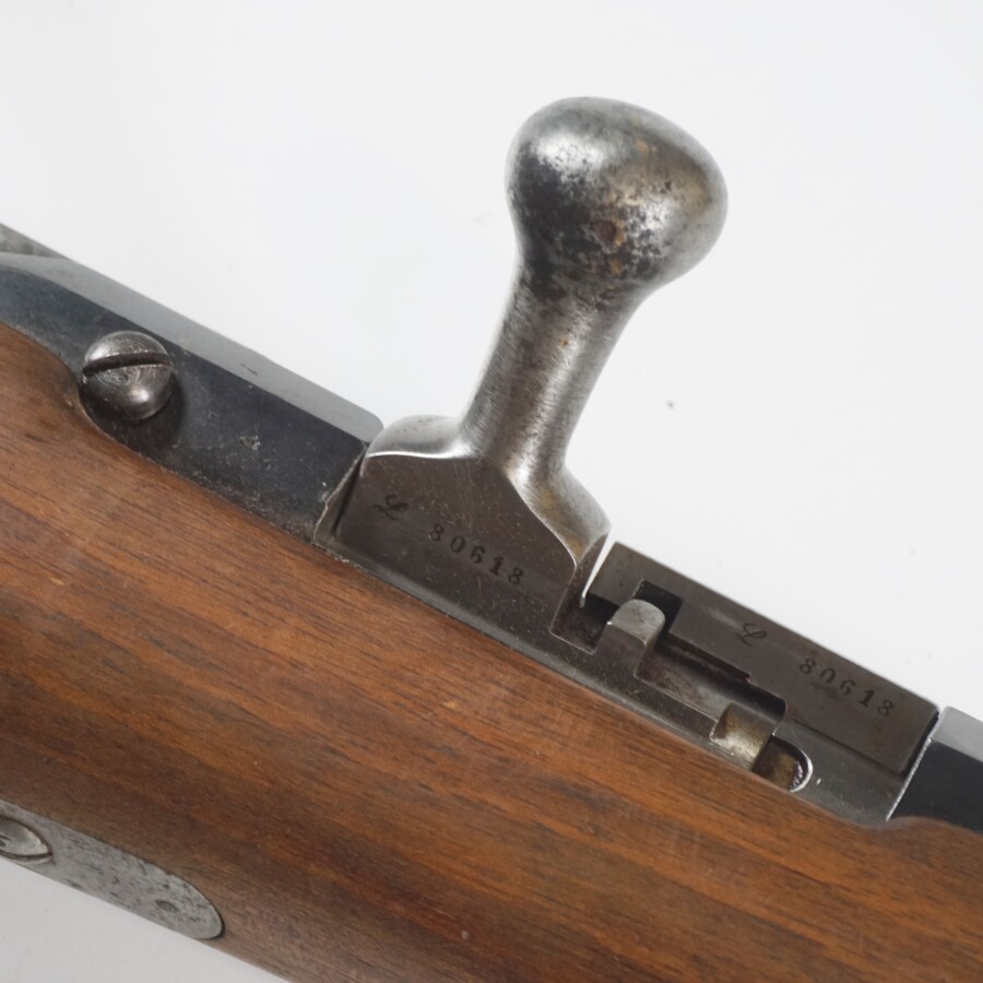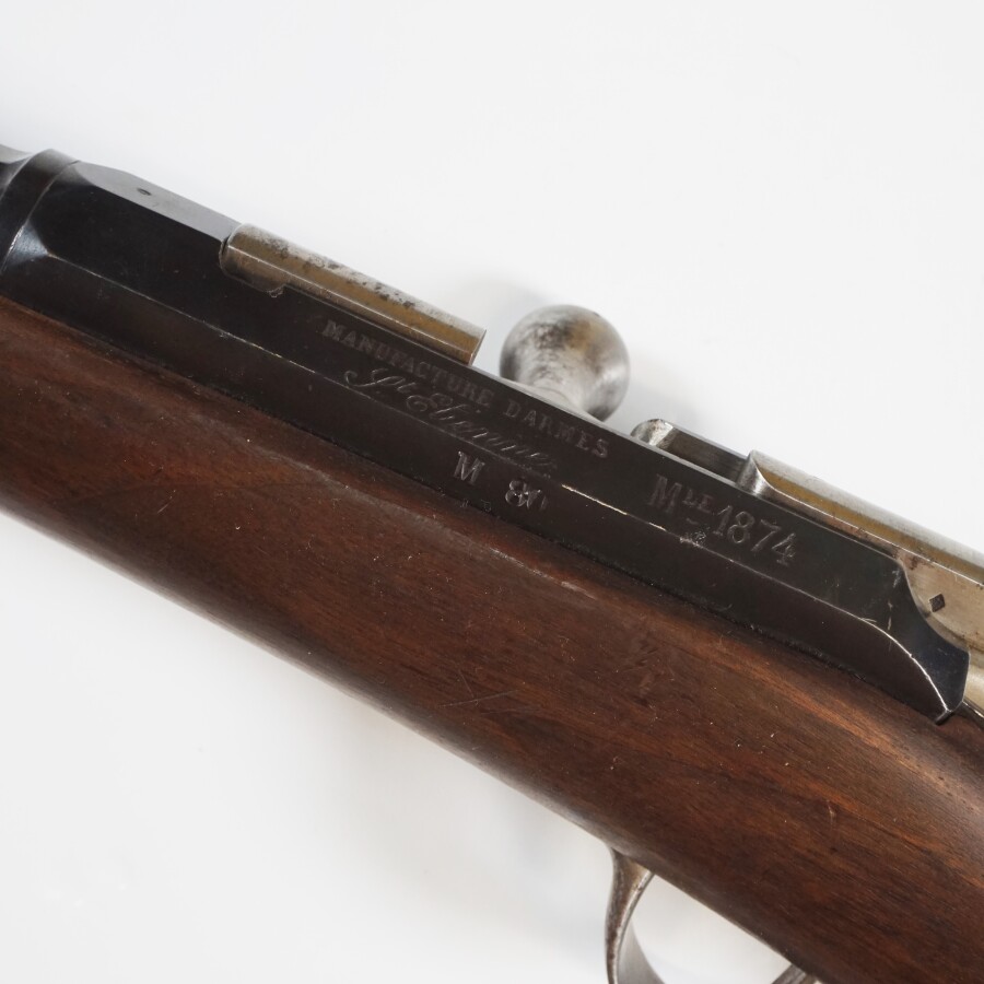 FUSIL GRAS MODELE 1874 M80 PRIX DE TIR - DON DU MINISTRE DE LA GUERRE, calibre 11 mm gras, boitier de culasse en acier bronzé noir marqué " MANUCTEURE D'ARMES St-Etienne Mle 1874 " et " M80 ", canon rond en acier bronzé noir de 82 cm daté " S1878 " et poinçonné au tonnerre, garnitures en acier, crosse en noyer au même numéro " 80618 " avec plaque ronde de 45 mm de diamètre marquée et gravée " UNION NATIONALE DES SOCIETES DE TIR DE FRANCE - 19801 - 13ème CHAMPIONNAT DE FRANCE DE LA JEUNESSE - 2ème PRIX FREULON - CHATEAU GONTIER - DON DU MINISTRE DE LA GUERRE " d'un côté et de l'autre avec une médaille allégorique avec la " HONNEUR PATRIE ", mécanisme semblant fonctionnel, longueur totale : 131 cm, BE/TBE.