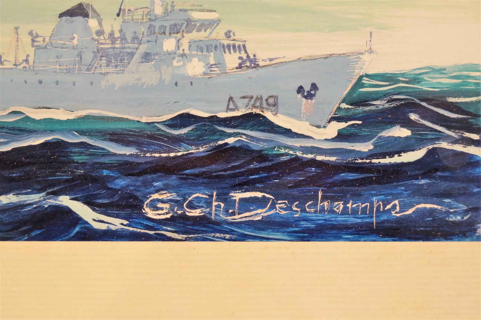 G. Ch. DESCHAMPS, "Destroyer", gouache sur papier, signée en bas à droite, 18 x 45 cm