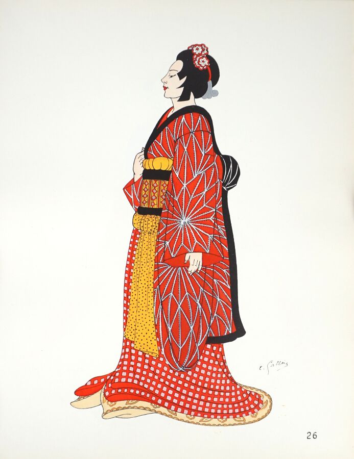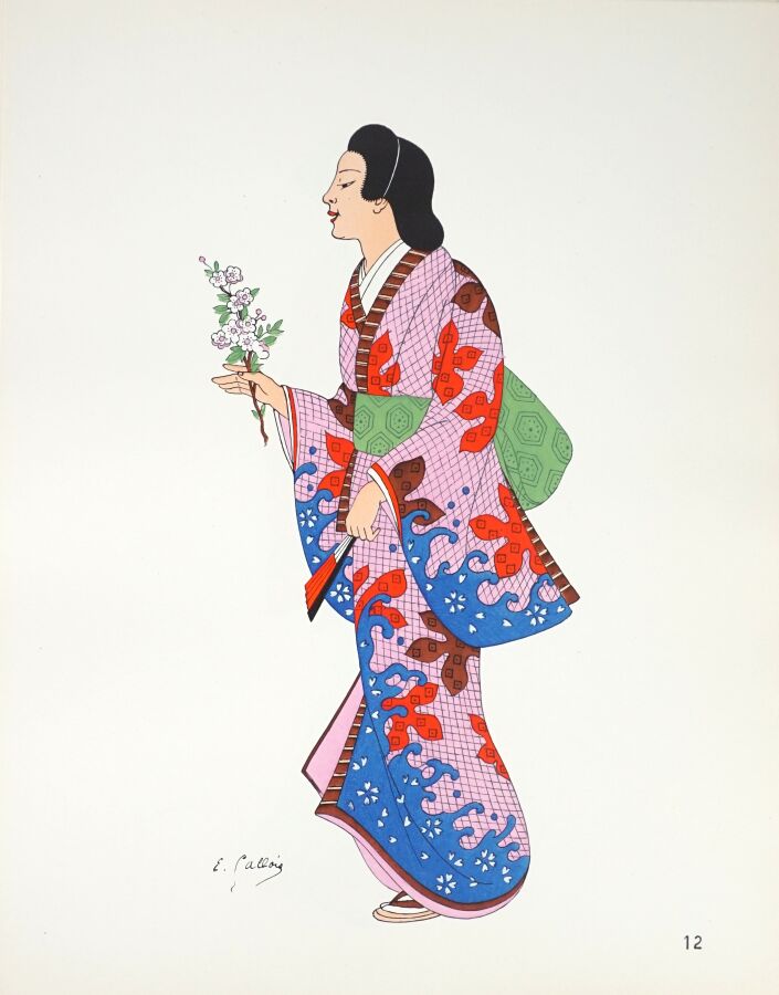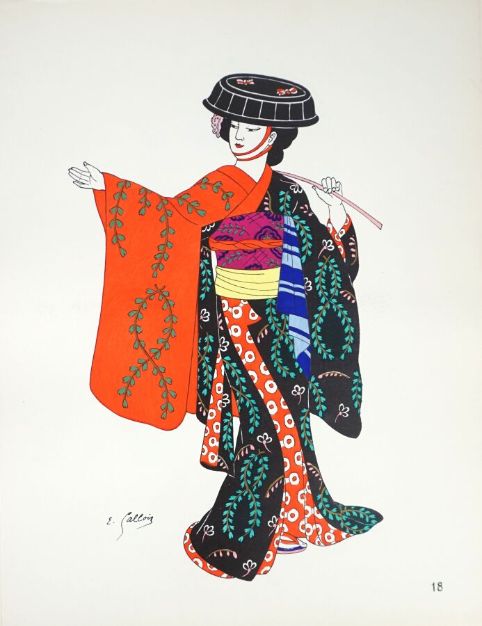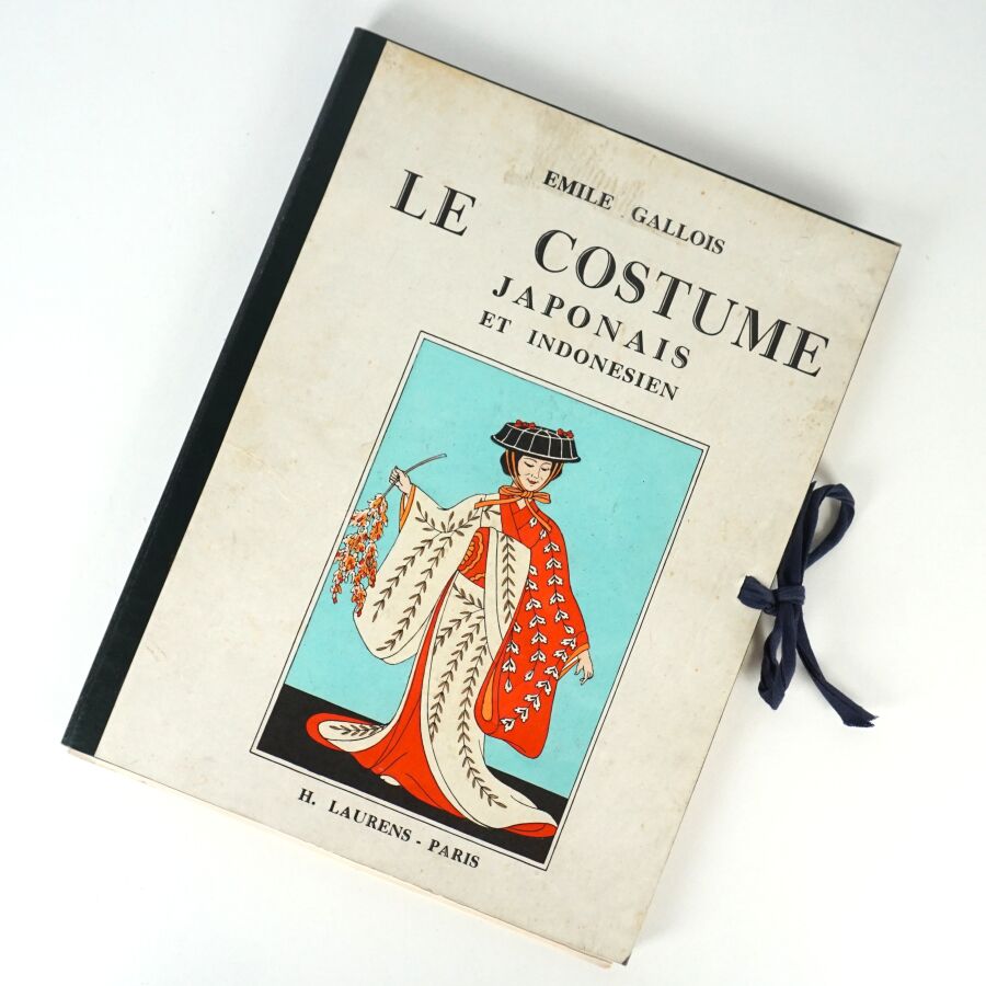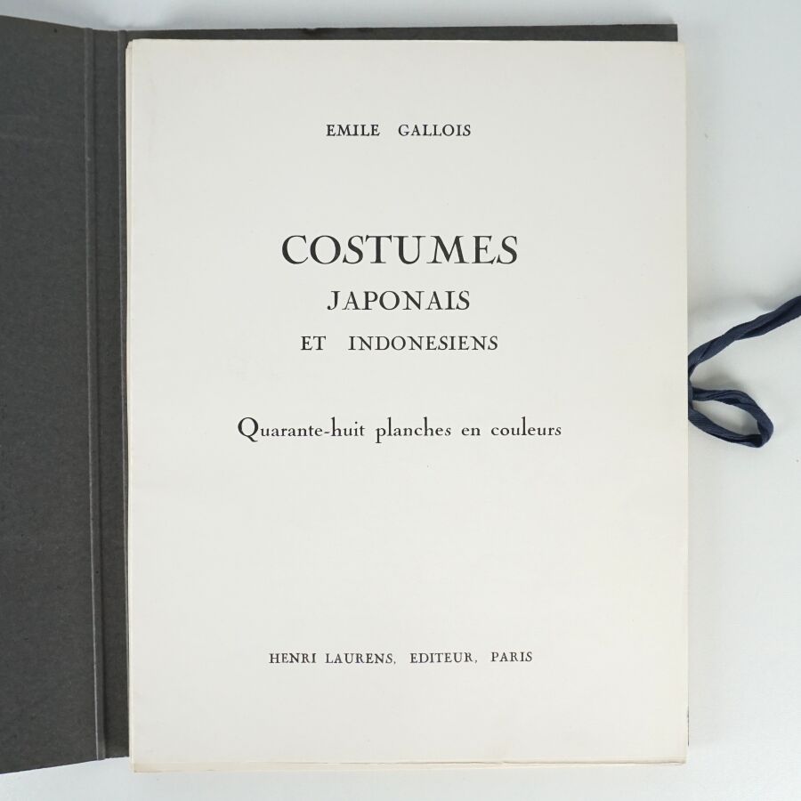 GALLOIS (Émile). Le Costume japonais et indonésien. Paris, Laurens, [c. 1950]. In-4 (32,5 x 24,8 cm), [4] ff. et 48 planches, en ff., sous chemise demi-toile noire illustrée en couleurs, lacets de fermeture (chemise de l'éditeur).