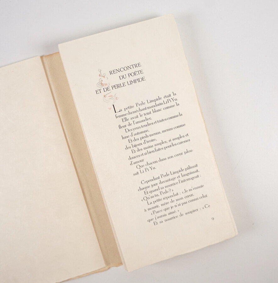 GANDON (Yves) - Le pavillon des délices regrettés - Sans lieu ; Pierre de Tartas, Éditions Rombaldi, 1961 - 1 volume In-8° étroit en feuilles sous couverture illustrée couleurs et étui de percale violette doublé de suédine rouge avec incrustation d'1 plaque émaillée illustrée en couleurs au 1er plat - 22 aquarelles originales in et hors texte de Viet-Ho - Très bon exemplaire numéroté sur japon nacré (n°98 sur les 80, tirage total : 120).