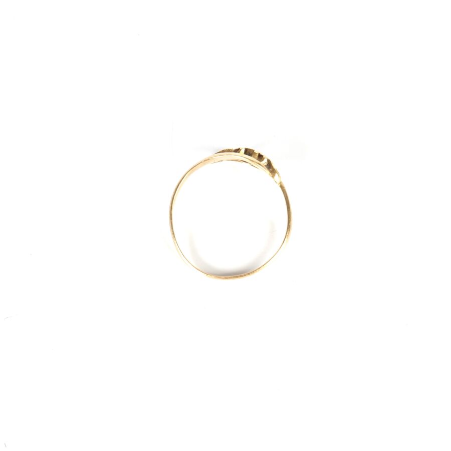 GARANTIE Bague en or jaune 18K (750/oo), le plateau ajouré à motif de deux étoiles, TDD.53. Dim. Tête de bague : 0.9 x 1.2 cm. Poids brut : 1.3 g environ (manque probablement deux pierres) (AC).