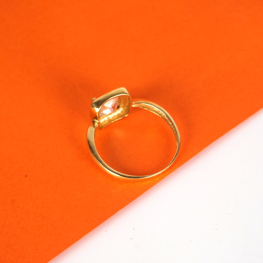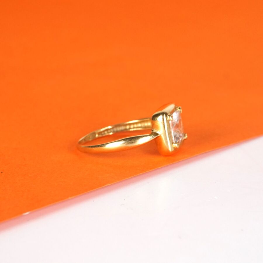 GARANTIE Bague en or jaune 18K (750/oo) sertie d'une pierre blanche taille princesse à l'imitation du diamant (D. 6 x 6 mm), TDD. 54. Poids brut : 2.2 g environ (AC).