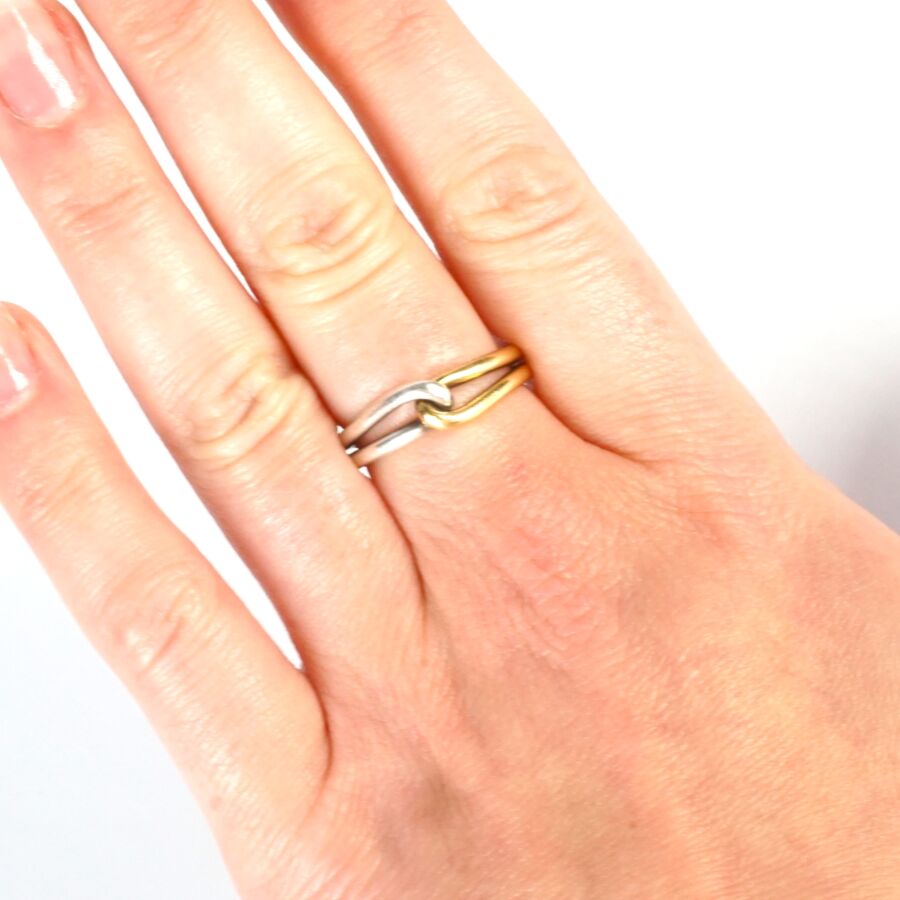 GARANTIE Bague "Noeud" en or 2 tons 18K (750/oo), Larg. 6 mm. TDD. 57. Poids brut : 5.2 g environ (AC).