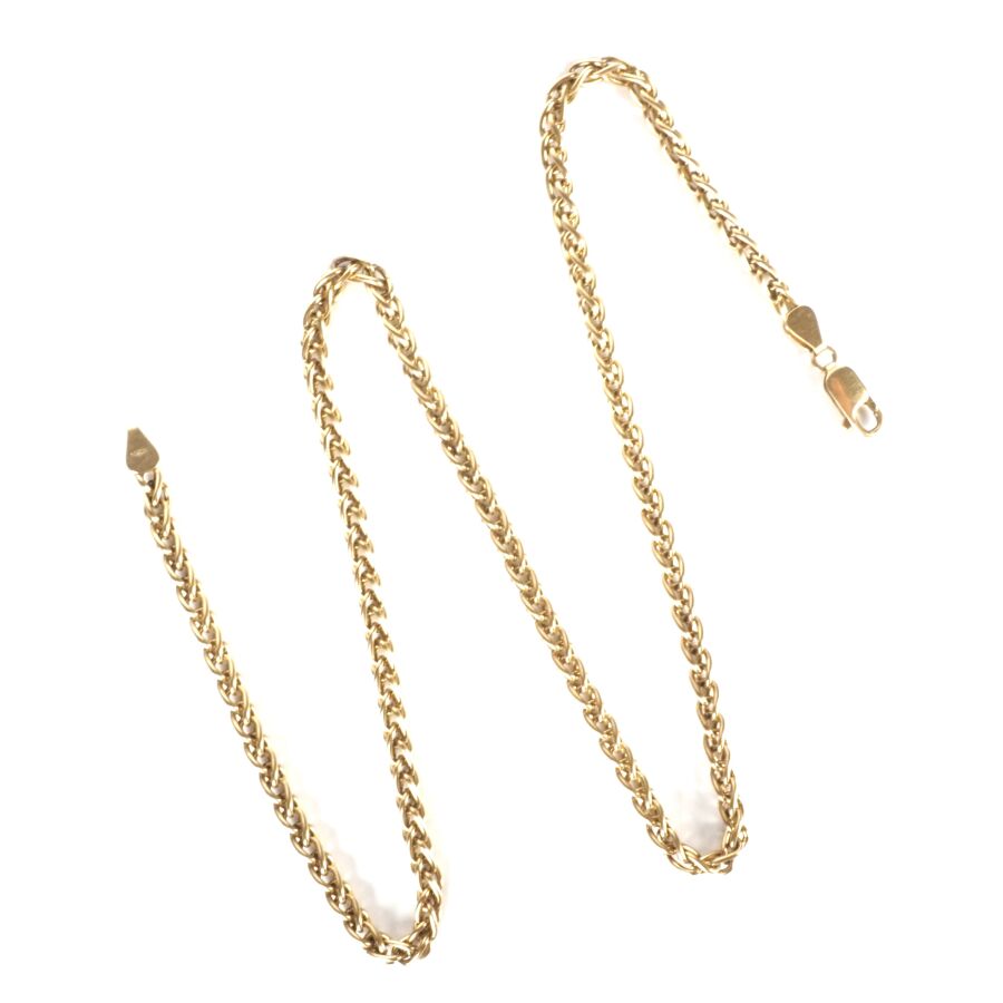 GARANTIE Chaîne en or jaune 9K (375/oo), maille tressée style corde, fermoir mousqueton, L. 52.3 cm. Larg. 4 mm. Poids brut : 26.9 g environ (AC).