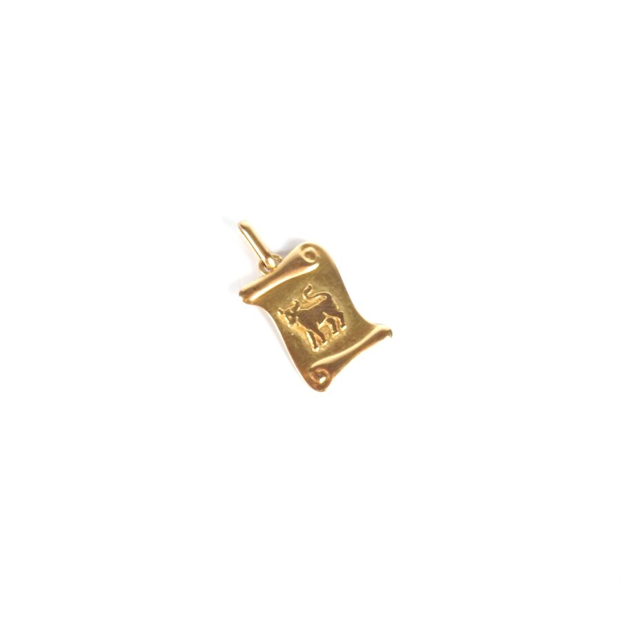 GARANTIE Pendentif "Signe du zodiaque - Taureau" en or jaune 18K (750/oo), Dim. Hors bélière : 1.6 x 1.2 cm. H. Avec bélière : 2.2 cm. Poids brut : 0.8 g environ (AC).