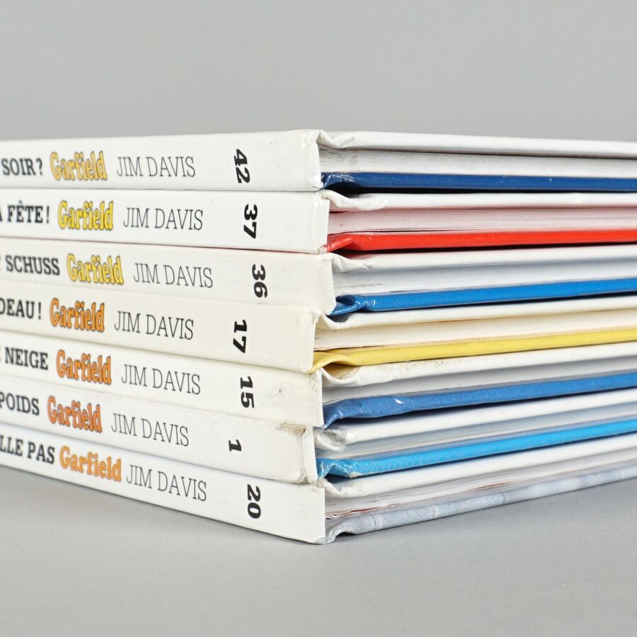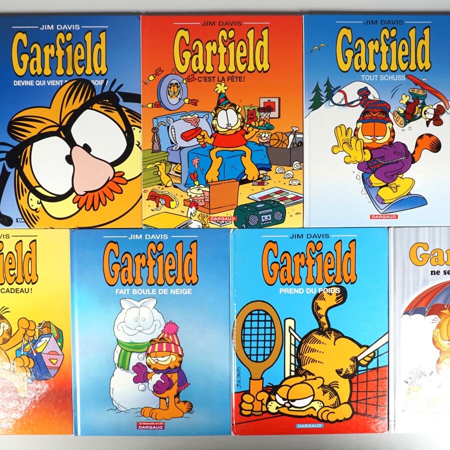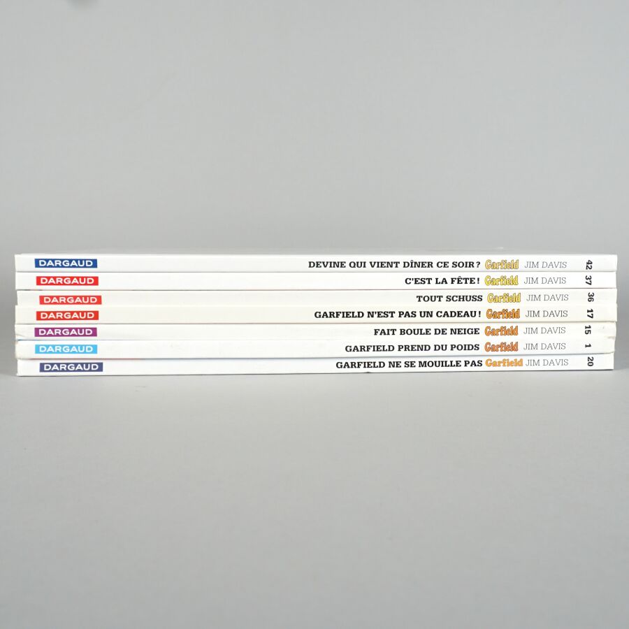 GARFIELD, éd. DARGAUD : Ensemble de 7 albums comprenant les tomes 1, 15, 17, 20, 36, 37 et 42. État moyen.