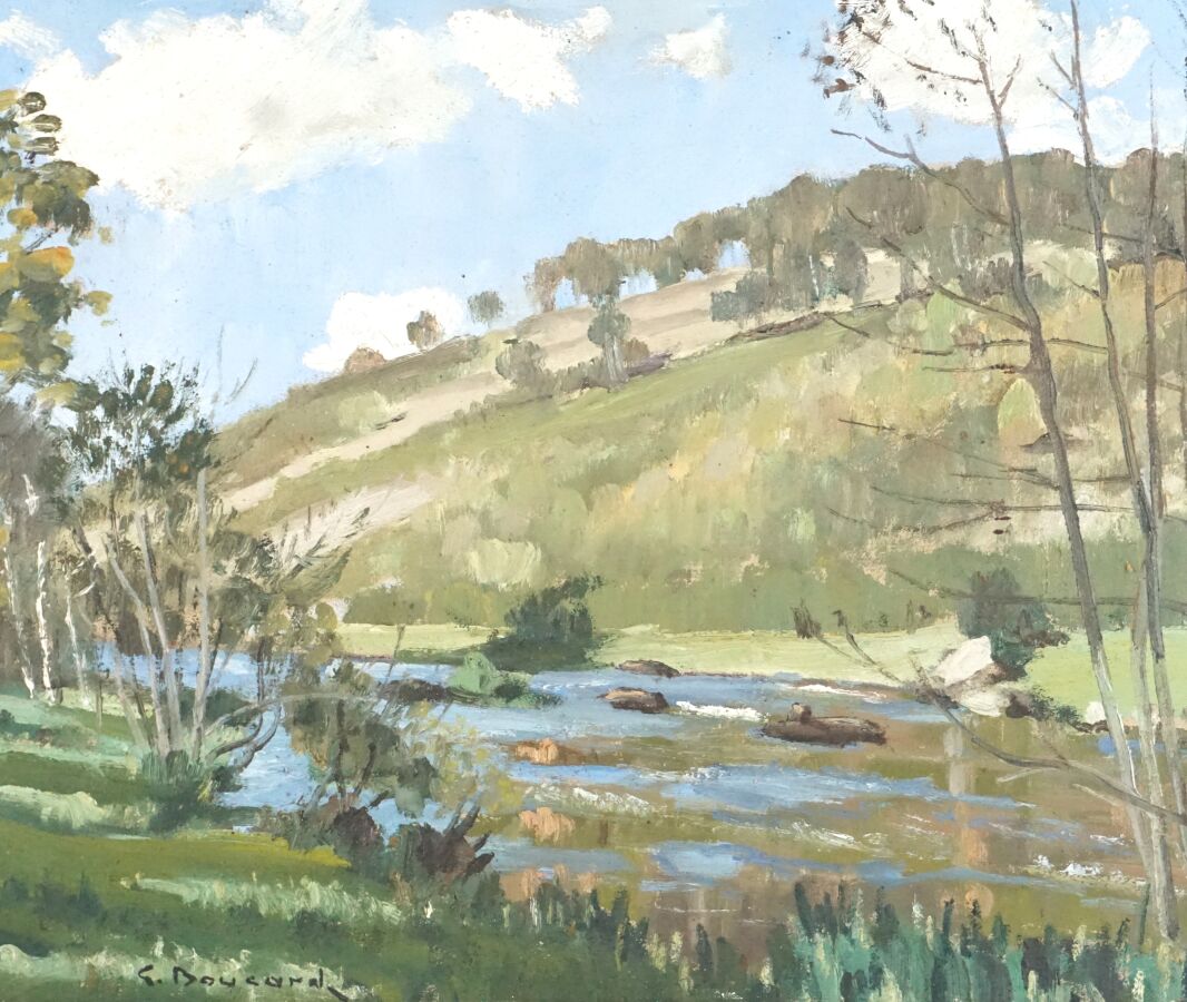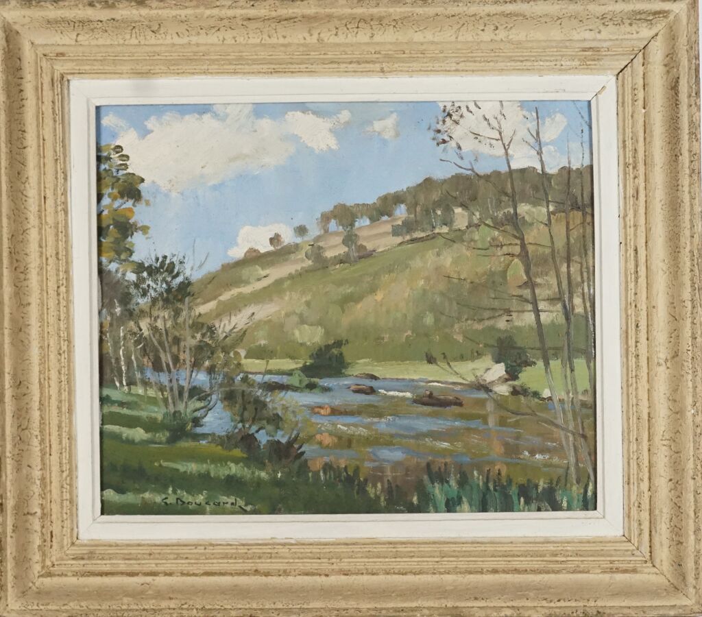 Gaston BOUCARD (1878-1962), "Le ruisseau", huile sur toile signée en bas à gauche, 38.5 x 46 cm.