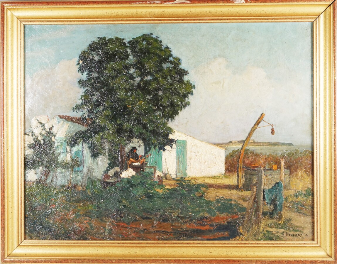 Gaston BOUCART (1878-1962), "Scène paysanne"19, huile sur toile signée en bas à droite, 45 x 60 cm.