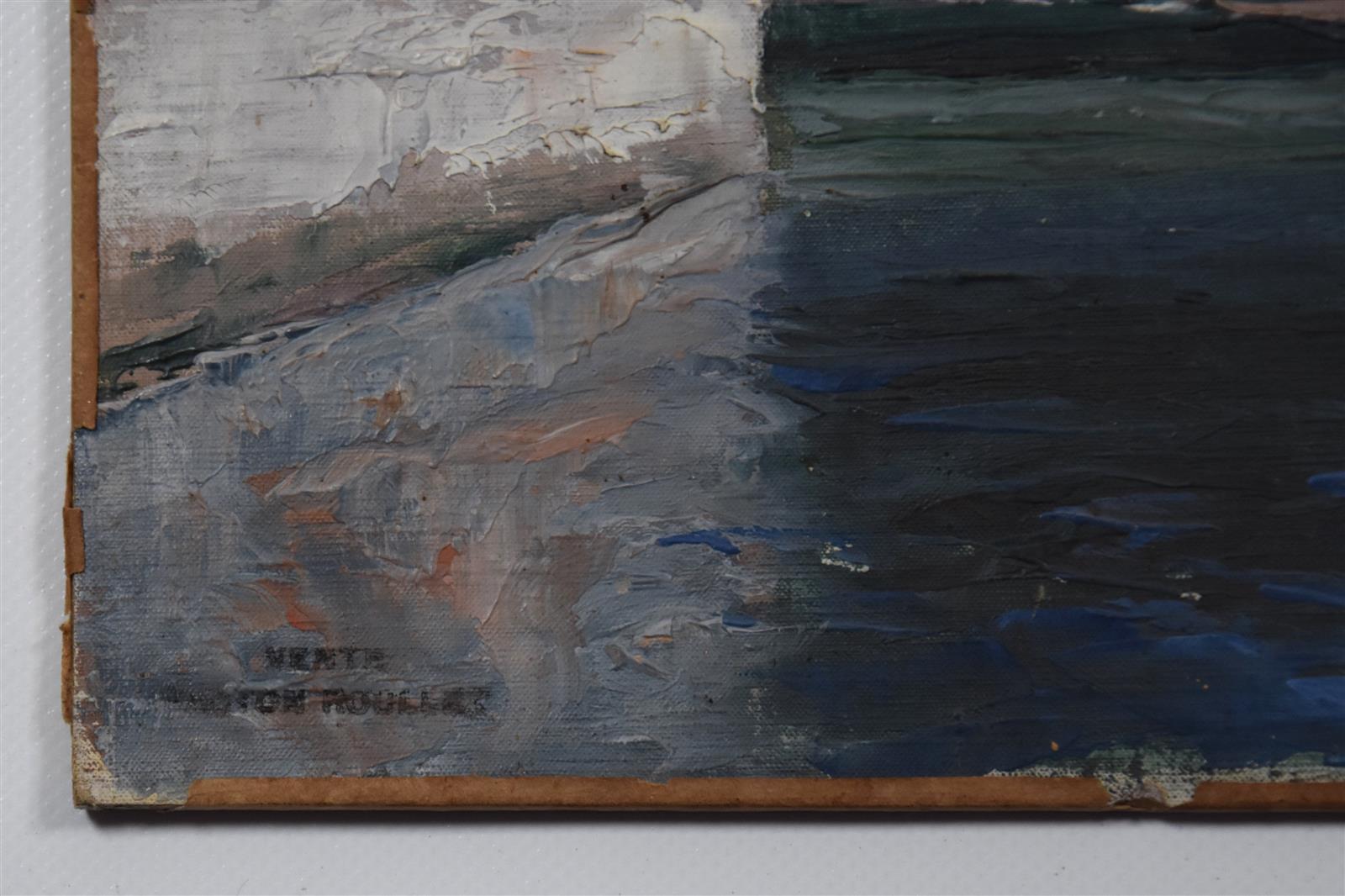 Gaston ROULLET (1847-1925), "Canal en été, Venise", huile sur toile marouflée sur panneau, tampon "Vente Gaston Roullet" en bas à gauche, 32 x 48.5 cm (panneau percé en haut au centre).