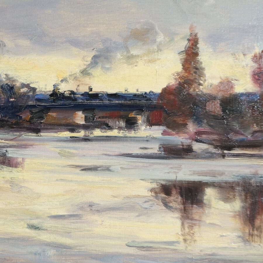 Gaston SEBIRE (1920-2001), "Paysage lacustre", huile sur toile signée en bas à gauche, 73 x 92 cm.