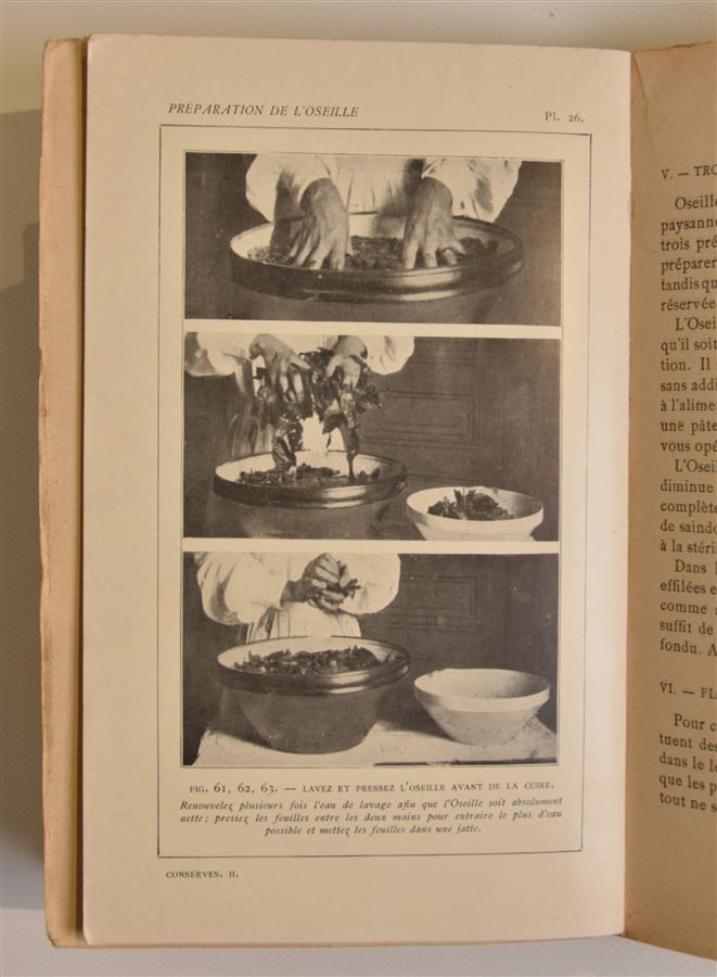 [GASTRONOMIE] - RAYMOND (Renée) - Les conserves à la maison. Ce qu'il faut connaître pour réussir champignons et condiments. Les légumes. Les fruits - Paris ; Librairie Hachette et Cie, 1913 - 3 volumes In-8° brochés - De petites fentes aux 1ers mors des tomes I et III, petit manque en haut de dos du tome II - 32 planches de 79 photographies démonstratives - Couvertures vertes imprimées et illustrées de vignettes - Bon exemplaire.