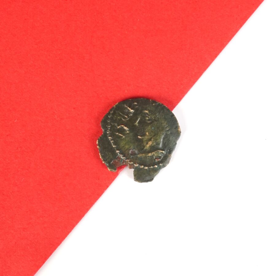 GAULE, Arvernes (Clermont-Ferrand) : Petit bronze Verca, 1er siècle av. JC : A/ Portrait romanisé à gauche VERCA, R/ Cheval à droite, annelet pointé au dessus, trident en dessous. Vercassivellannos était le cousin de Vercingétorix. Rare. Poids brut : 0,95 g environ.