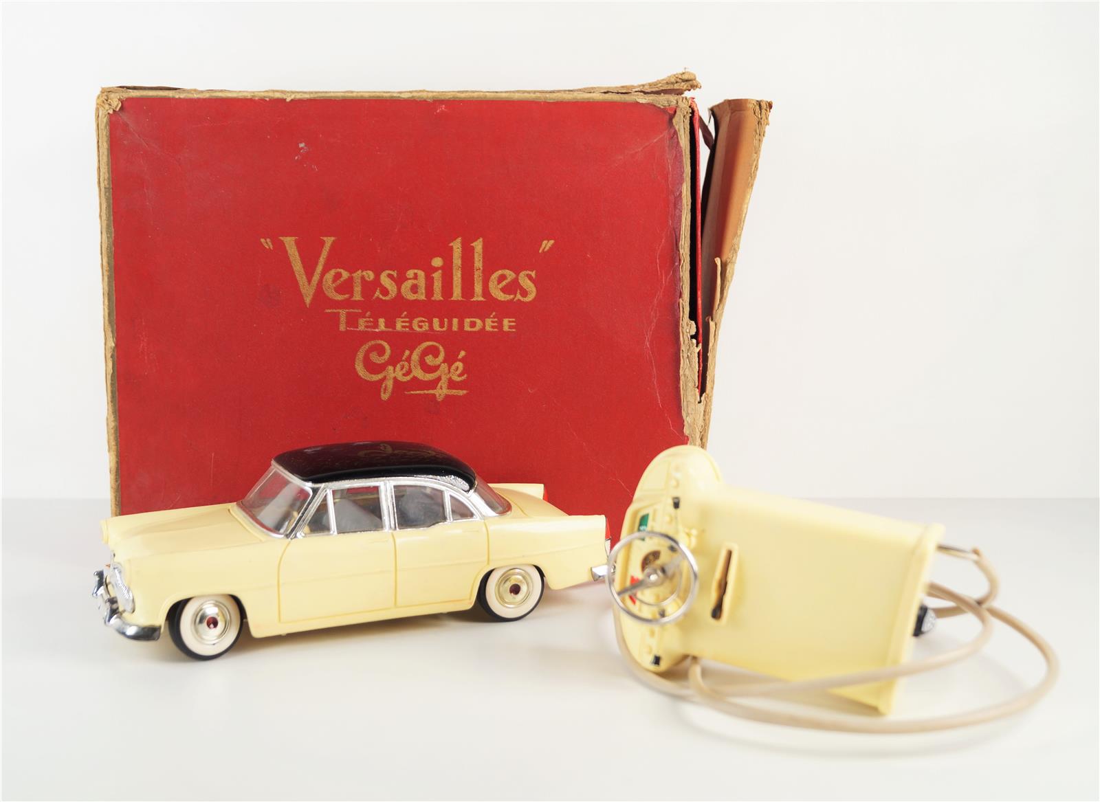 GEGE Versailles Téléguidée, voiture téléguidée, circa 1960, dans la boîte d'origine. L. 25 cm. (boite accidentée)