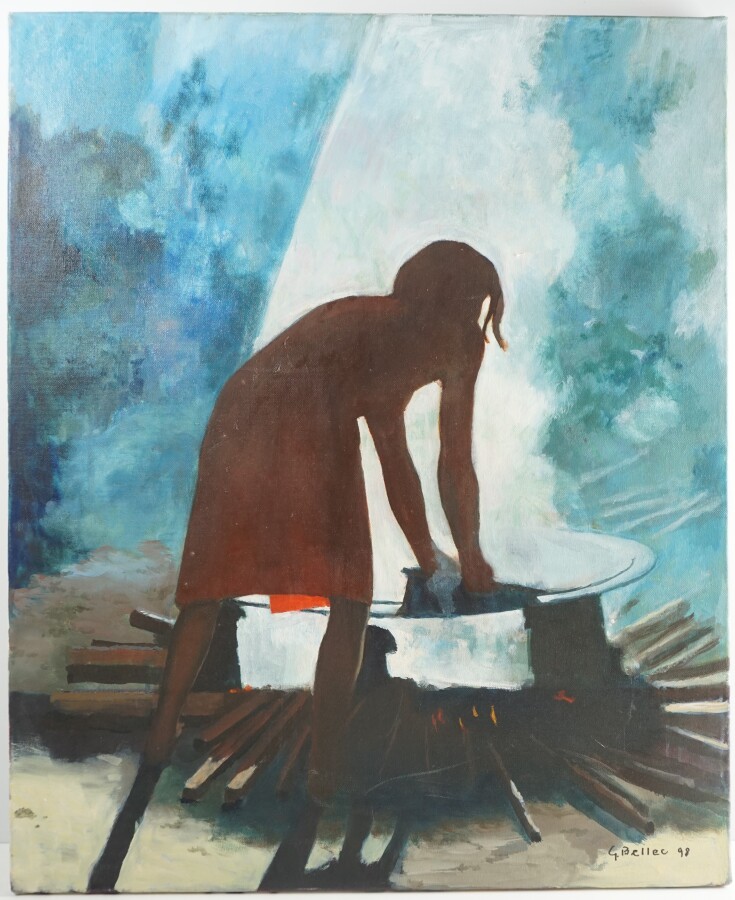 Georges BELLEC (1918-2012), "Silhouette" 98, huile sur toile signée et datée en bas à droite, 65 x 54 cm (sans encadrement).