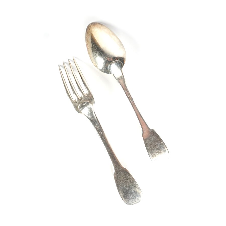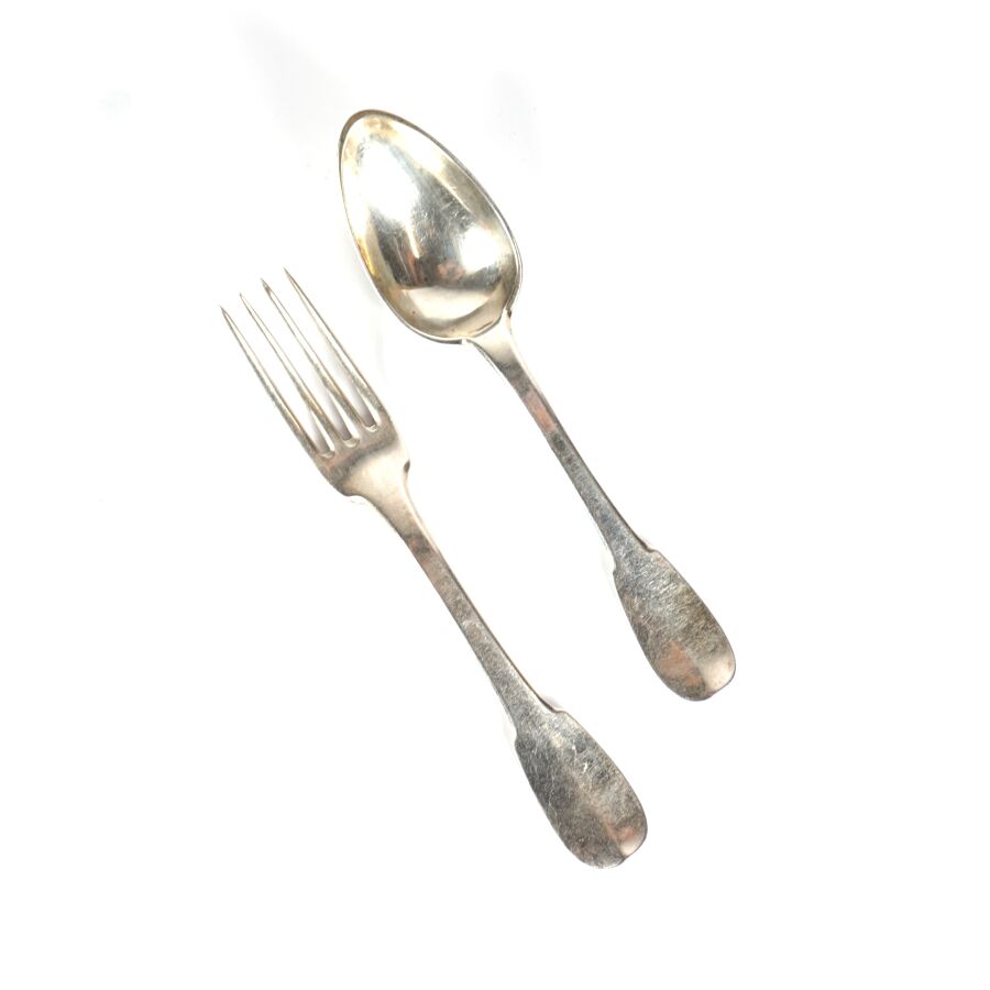 Georges CARPENTIER : Couvert en argent, poinçon coq 1er titre (950/oo) Paris (1798-1809), grosse garantie Paris, modèle uniplat, Poids brut : 160 g environ.