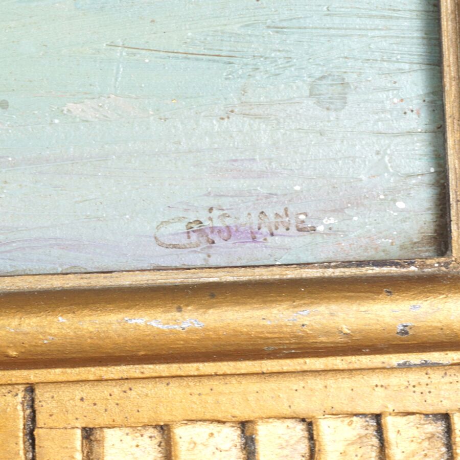 Georges Charles CRISMANE (XXe), "Bateaux à quai sur la jetée d'Honfleur", huile sur carton signée en bas à droite, 27 x 46 cm (petit manque en partie supérieure gauche, tâches).