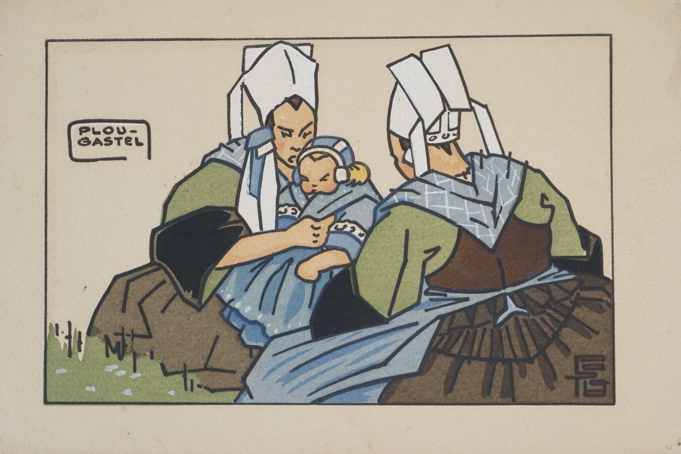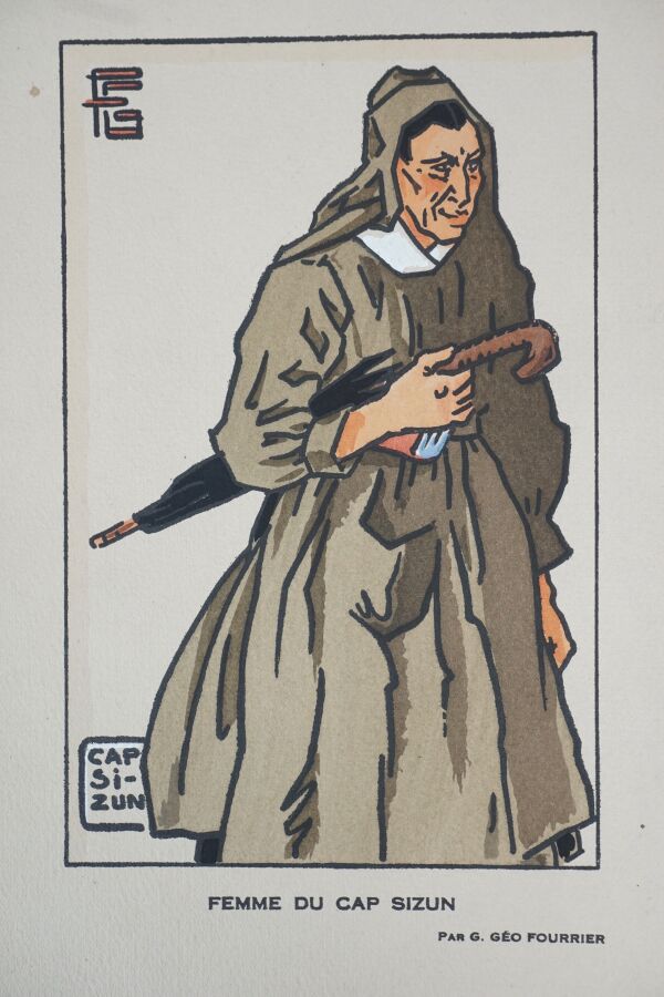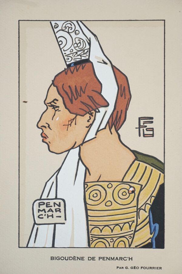 Georges GÉO-FOURRIER (1898-1966) : Série de huit portraits de bretonnes et bretons, gravures au pochoir, cette série comprenant habituellement douze portraits, Dim. Planches : 23 x 15 cm (légères usures).