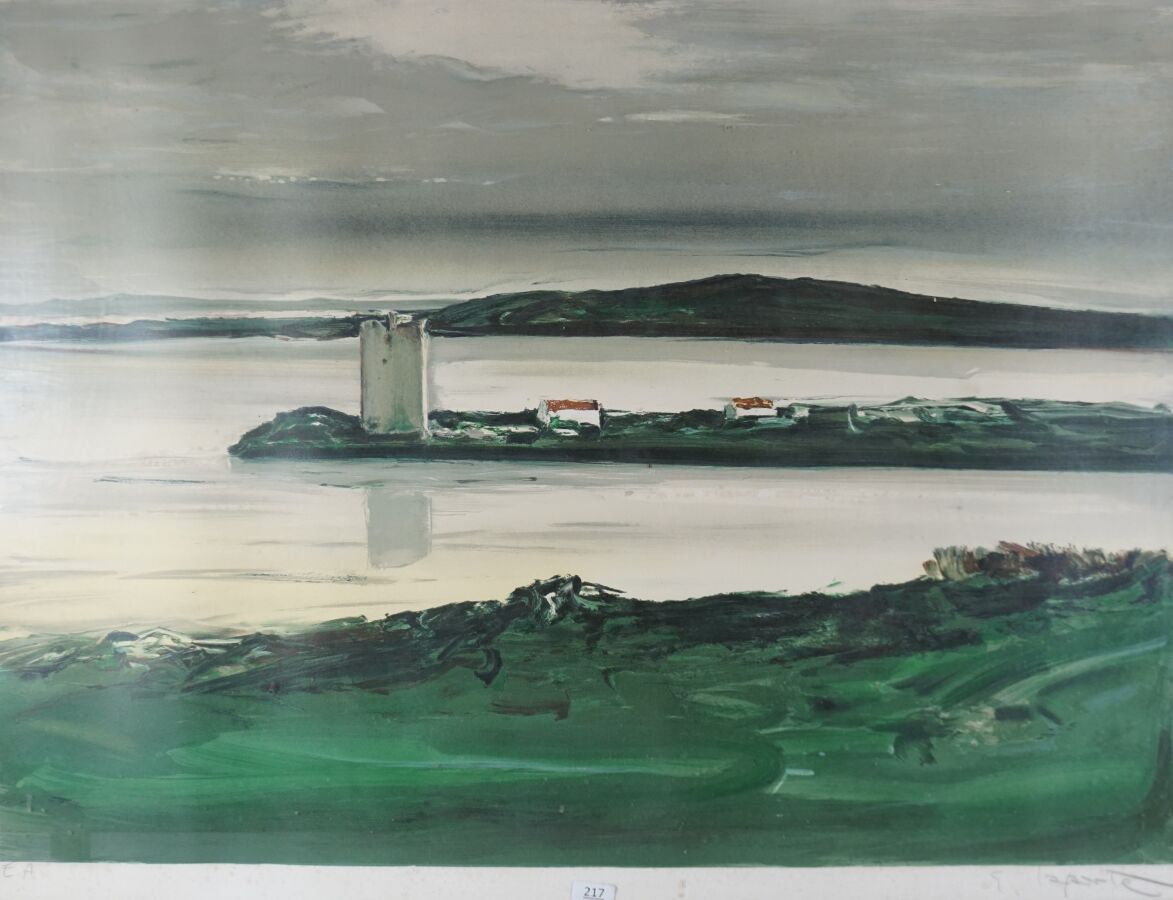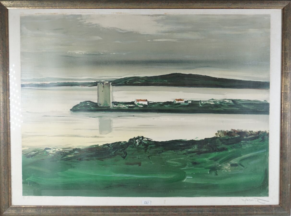 Georges LAPORTE (1926-2000), "Bord de mer", lithographie justifiée "E.A" (épreuve d'artiste) en bas à gauche et signée au crayon en bas à droite dans la marge, 78.5 x 108 cm (à vue) (rousseurs).