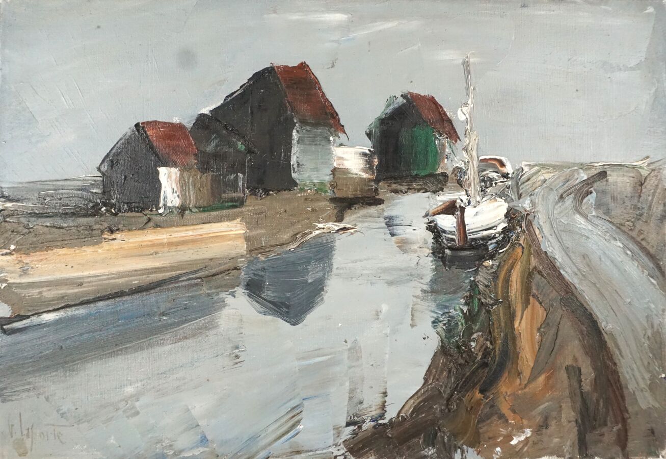 Georges LAPORTE (1926-2000), "La Tremblade", huile sur toile signée en bas à gauche, titrée au dos, 38 x 55 cm.