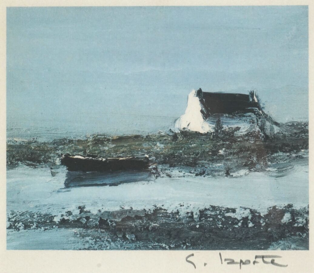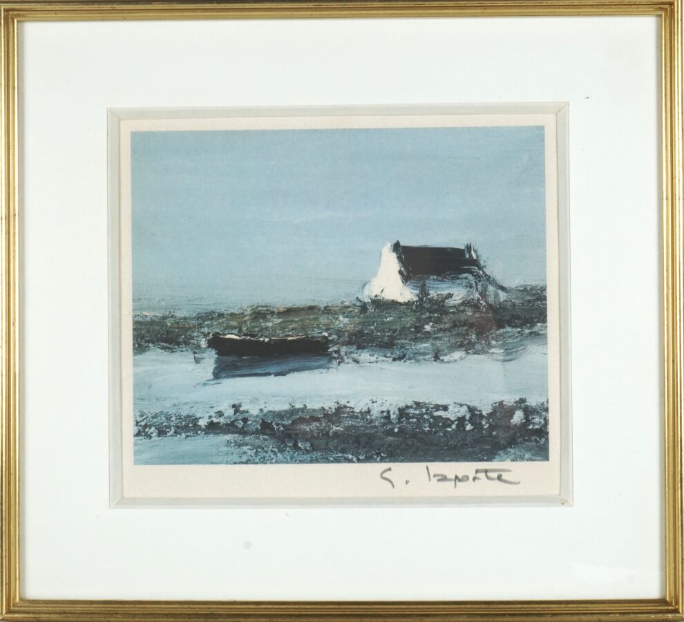 Georges LAPORTE (1926-2000), "Maison à la barque", lithographie signée dans la marge en bas à droite, non justifiée, 19 x 22 cm (à vue).
