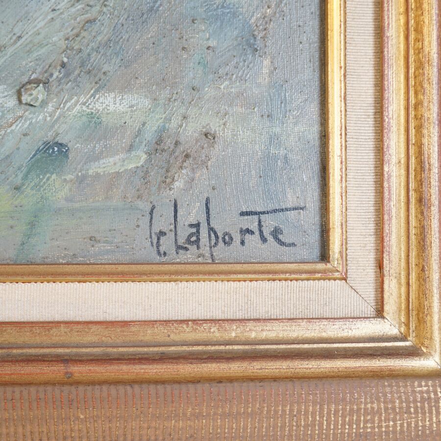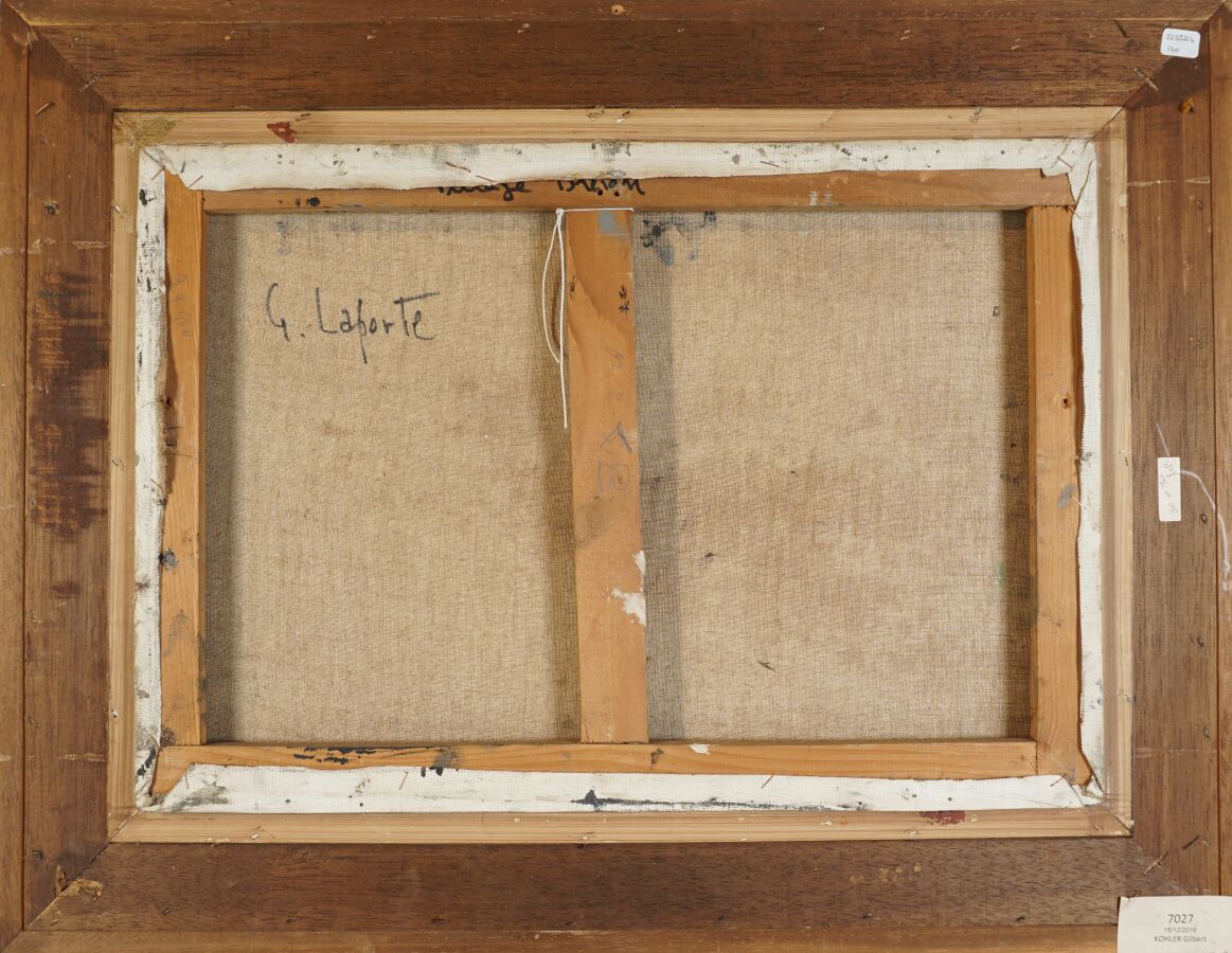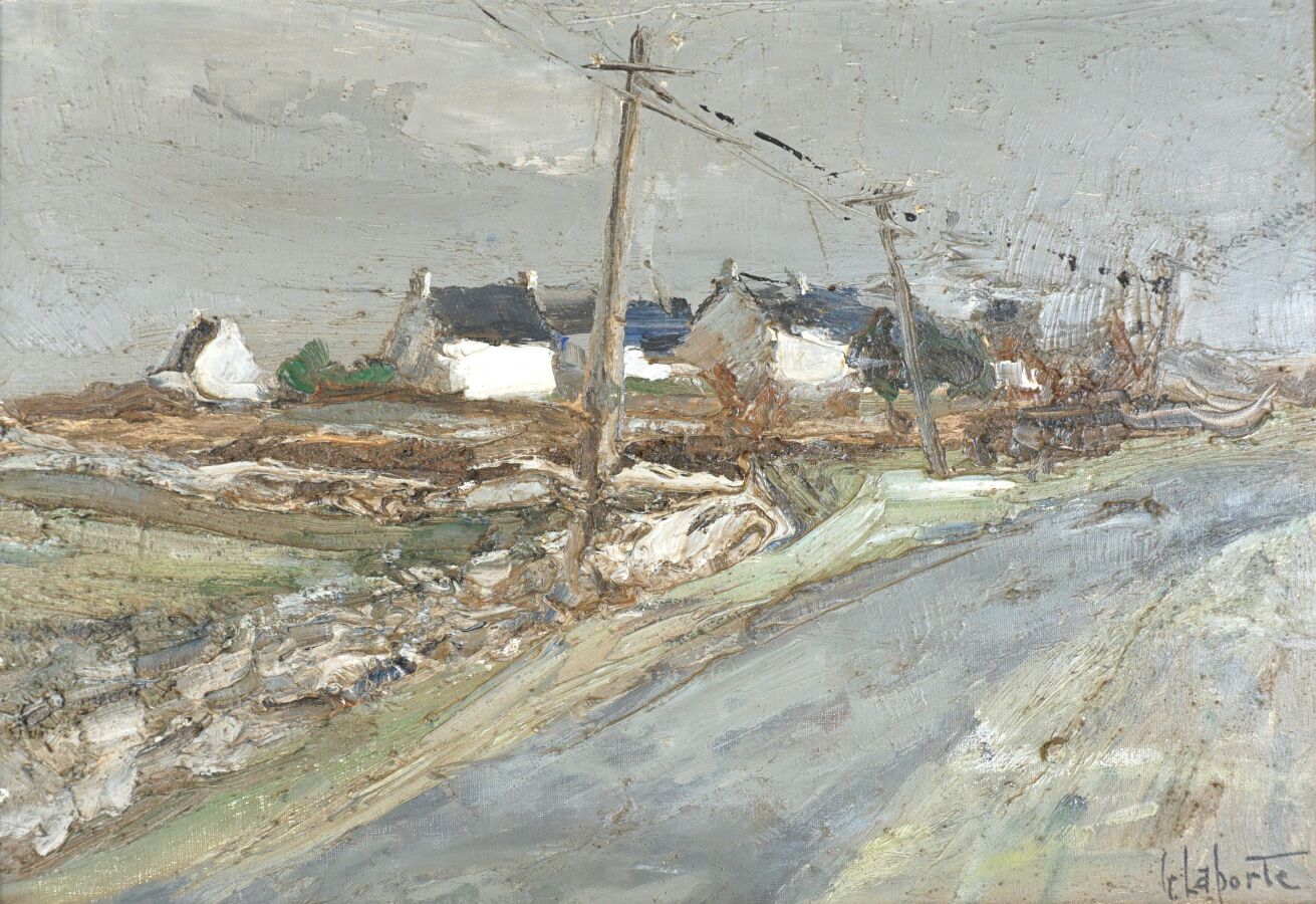 Georges LAPORTE (1926-2000), "Village breton", huile sur toile signée en bas à droite, contresignée et titrée au dos, 38.2 x 55.2 cm.