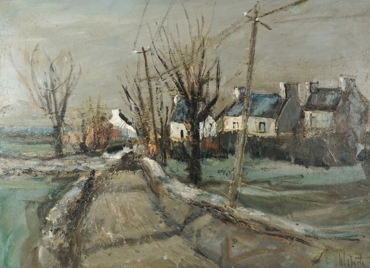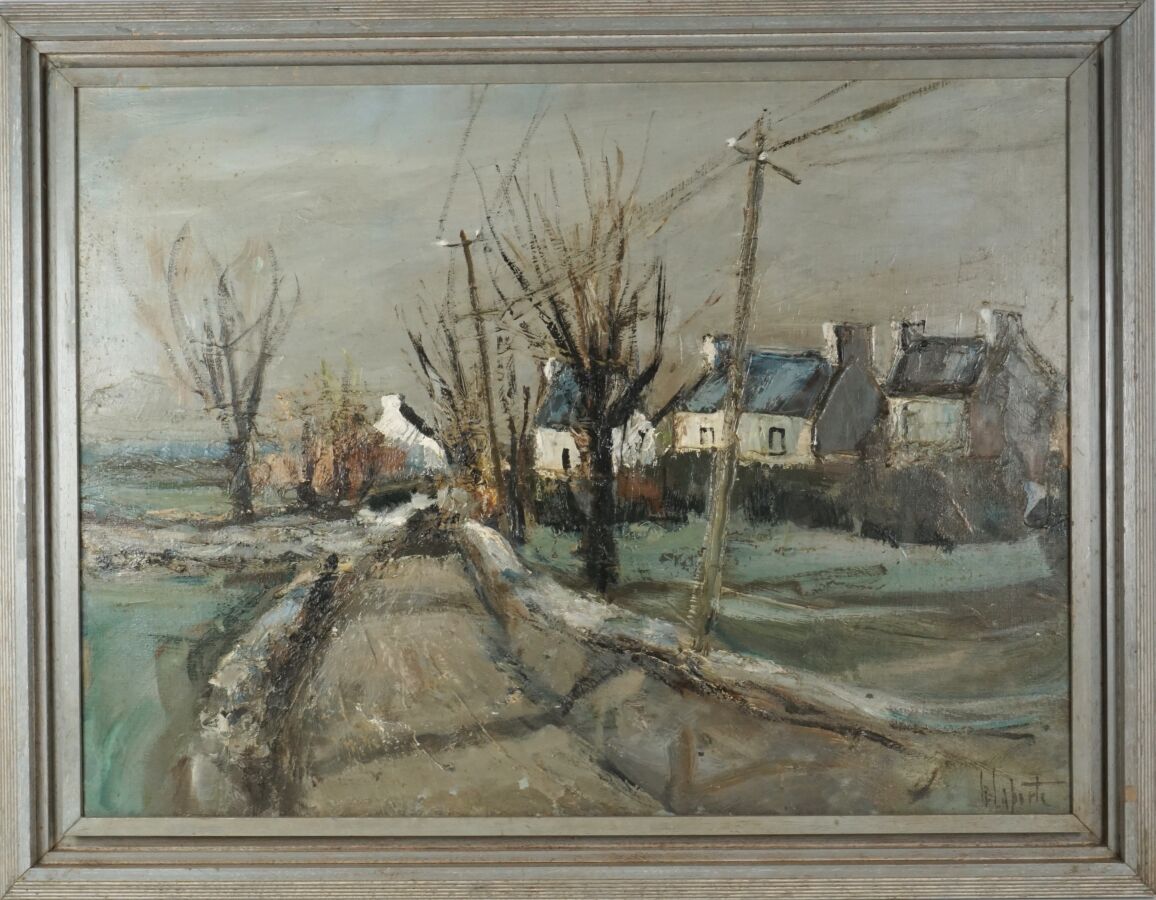 Georges LAPORTE (1926-2000), "Village en Bretagne", huile sur toile signée en bas à droite, titrée au dos et numérotée 72, 60 x 81 cm.