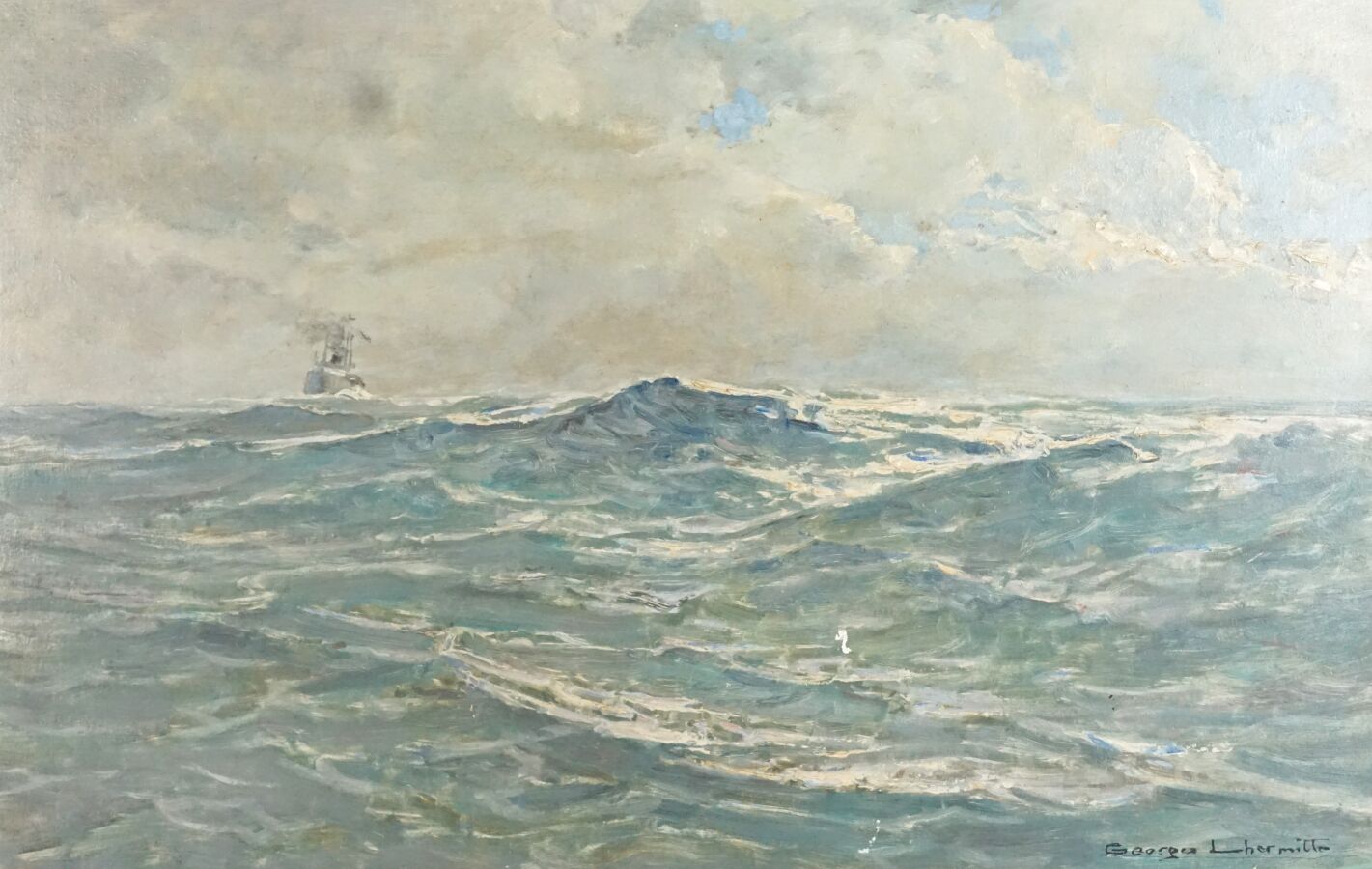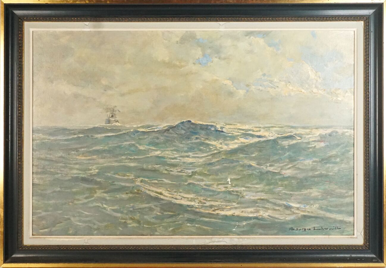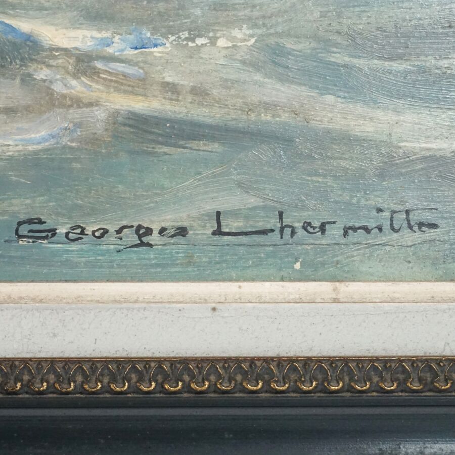 Georges LHERMITTE (1882-1967), "Marine", huile sur isorel signée en bas à droite, 42 x 66 cm (manques).