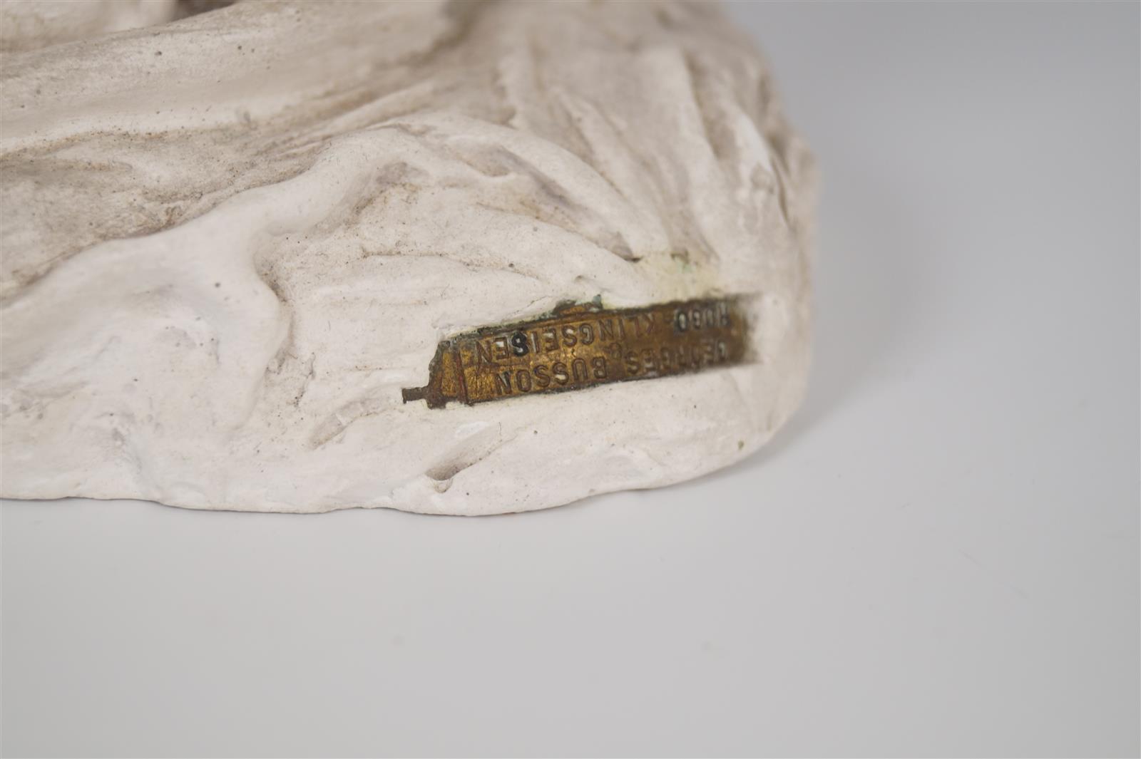 Georges Louis Charles BUSSON (1859-1933) et Hugo KLINGSEISEN (XX), "Épagneul assis", plâtre, signé sur la terrase, H. 22 cm, L. 18 cm (une patte accidentée, quelques rayures, à nettoyer)