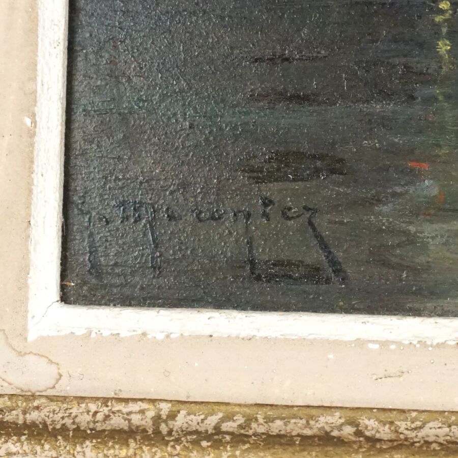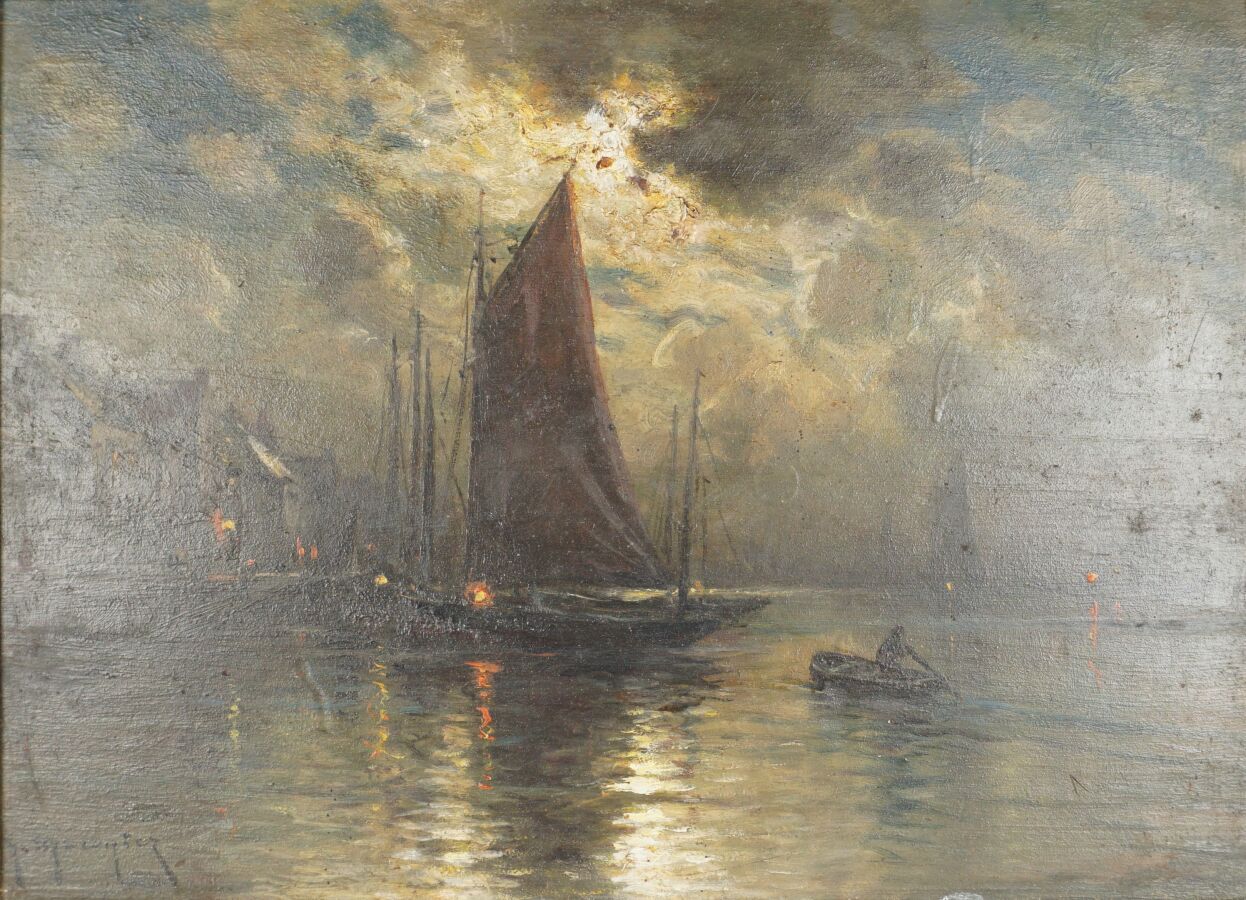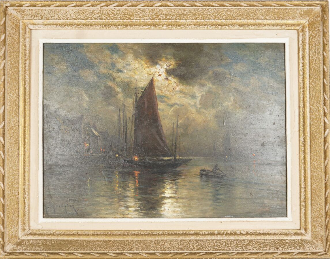 Georges P. MARONIEZ (1865-1933), "Clair de lune sur le port", huile sur panneau signée en bas à gauche, 22 x 34 cm.