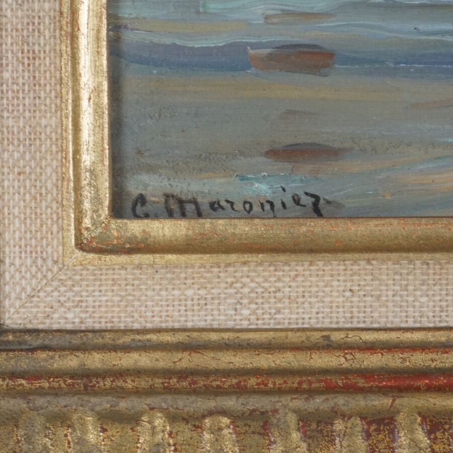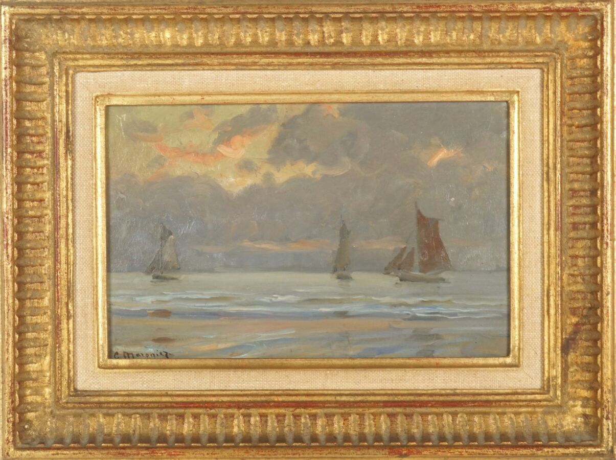Georges P. MARONIEZ (1865-1933), "Voiliers", huile sur panneau signée en bas à gauche, 16 x 24.5 cm.