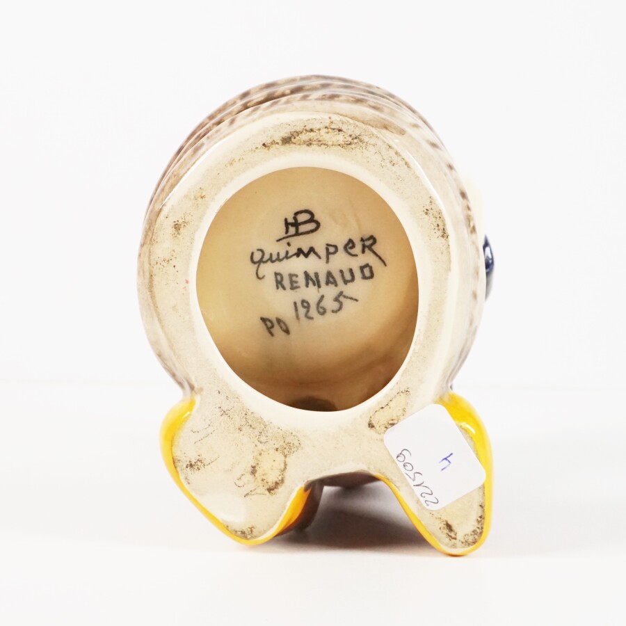 Georges RENAUD (1901-1994) - HB QUIMPER : Joli vide-poche en faïence émaillée polychrome figurant un marin, signé dessous, marqué et numéroté 1265, H. 15.5 cm.