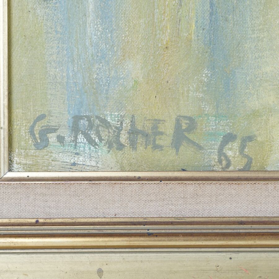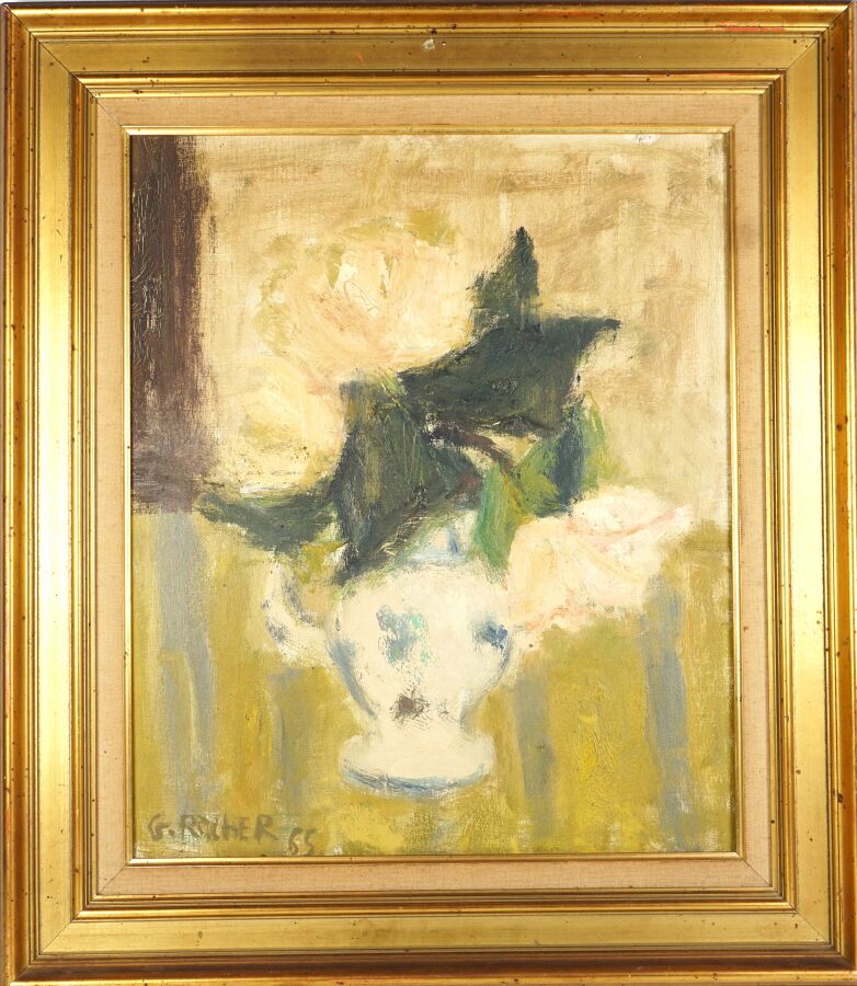 Georges ROCHER (1927-1984), "Bouquet de pivoines" 65, huile sur toile signée et datée en bas à gauche, 55 x 46 cm.