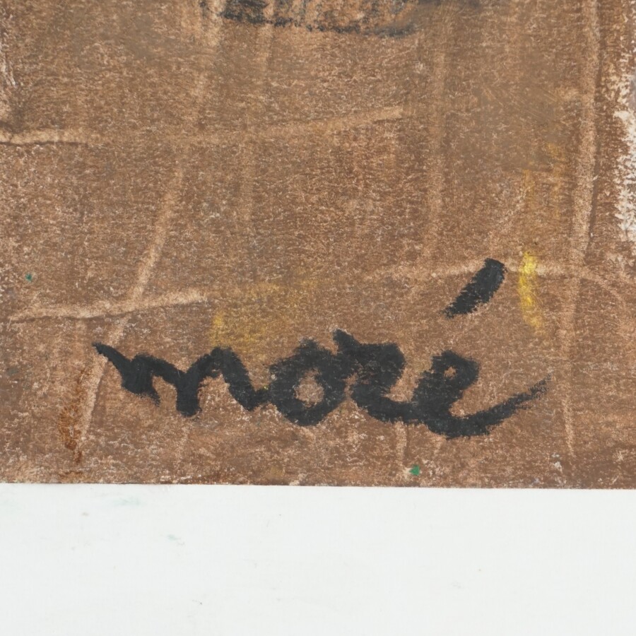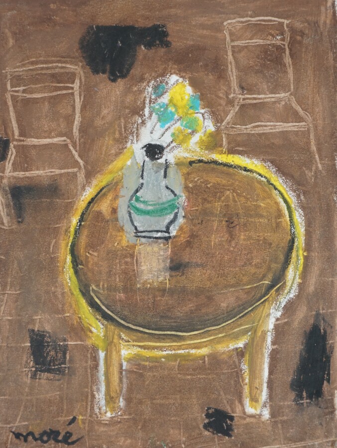 Germaine MORE (1903), "La cuisine", pastel et gouache sur papier marouflé, signé en bas à gauche, 24 x 32 cm.