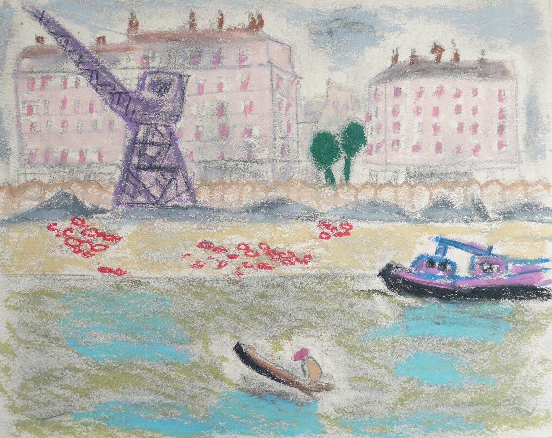 Germaine MORE (1903), "La grue", pastel et gouache sur papier, 24 x 30 cm. * Provenance : Fonds d'atelier Germaine Moré