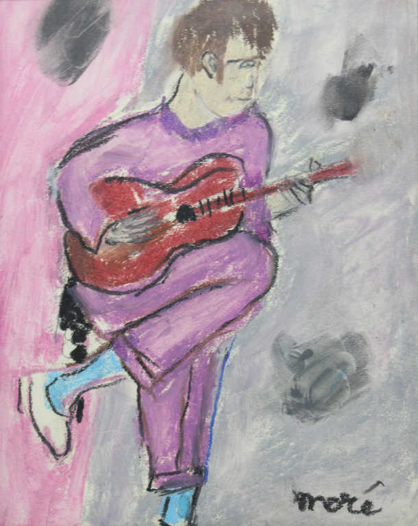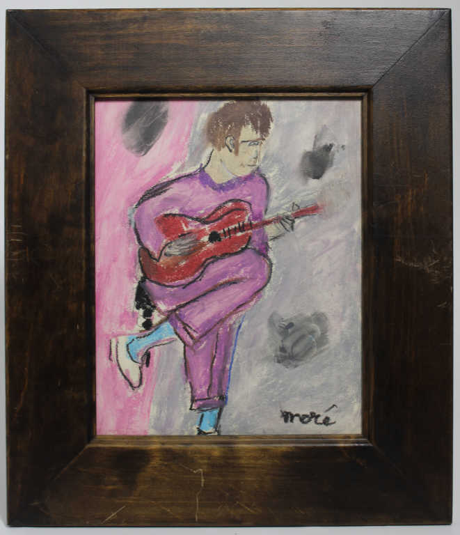 Germaine MORE (1903), "Le guitariste", pastel signé en bas à droite, 28 x 23 cm.
