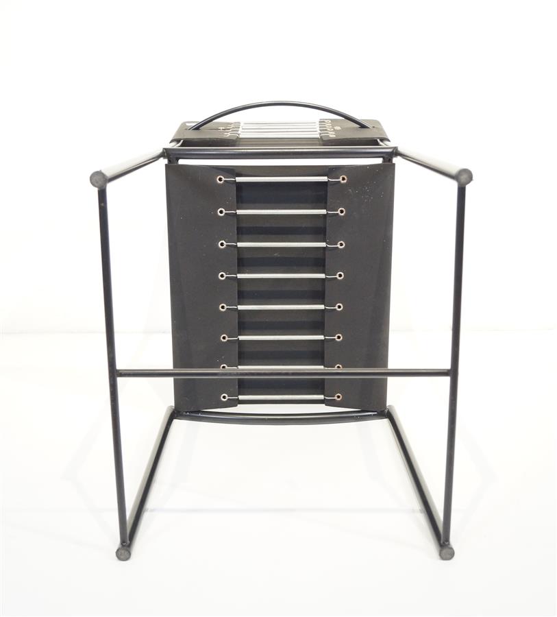 Giandomenico BELOTTI (XXe) pour ALIAS Italy : Suite de 6 chaises "Spaghett", structure tubulaire en acier laqué noir, circa 1980, H. 84 cm (en l'état)