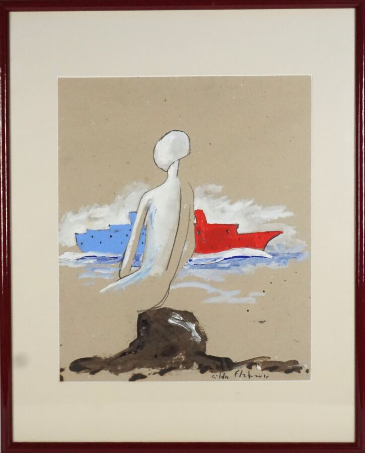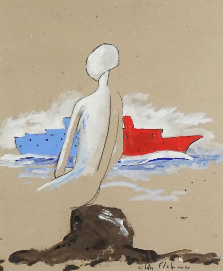 Gildas FLAHAULT DE CROZET (1957), "Le paquebot", pastel et gouache signé en bas à droite, 28,8 x 34,6 cm (à vue).