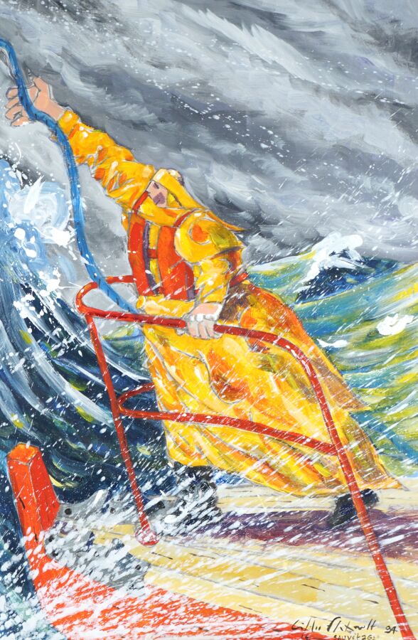 Gildas FLAHAULT DE CROZET (1957), "Le sauvetage" 94, technique mixte sur papier, signée et datée en bas à droite, 39 x 59,5 cm (à vue).