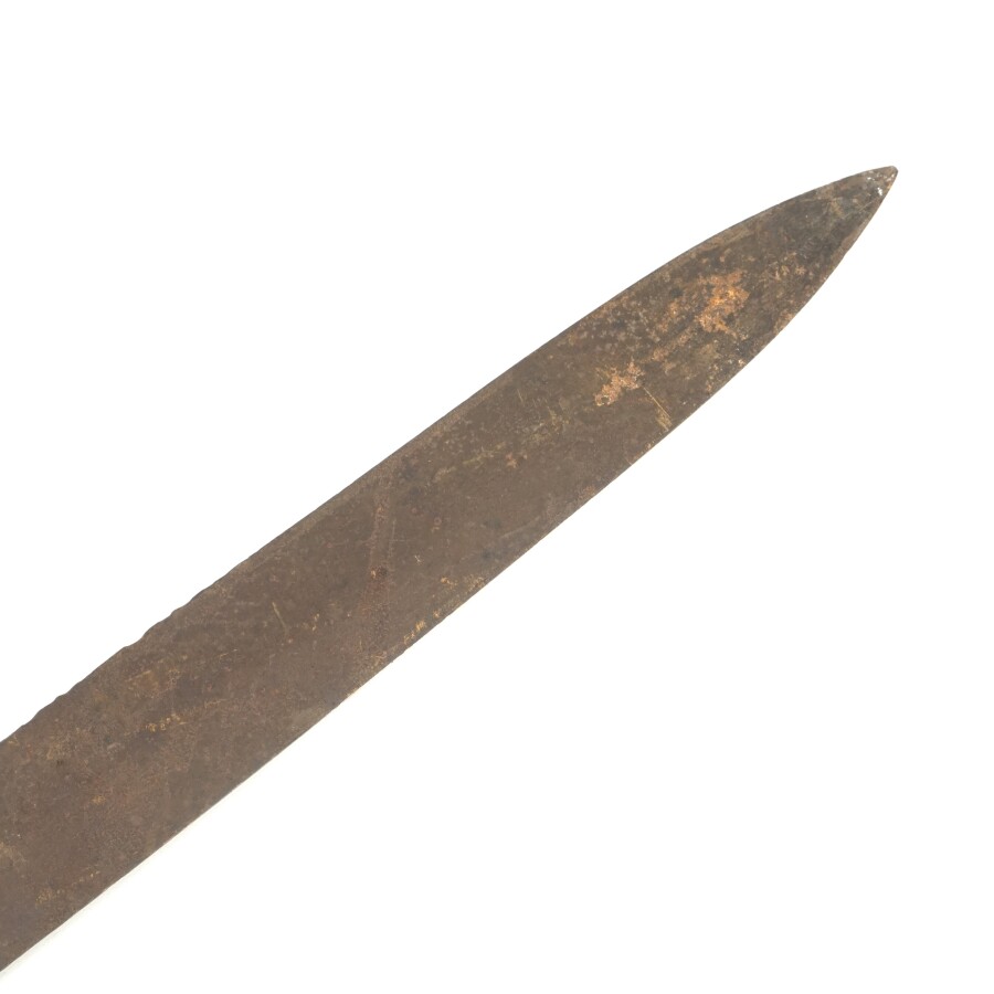 GLAIVE D'INFANTERIE MODELE 1831, monture en laiton moulé à pommeau ovoïde, poignée balustre cannelée, croisière droite à quillons à rouelle. Lame piquée de 47 cm à double tranchant et arête médiane, sans fourreau, ETAT GRENIER.