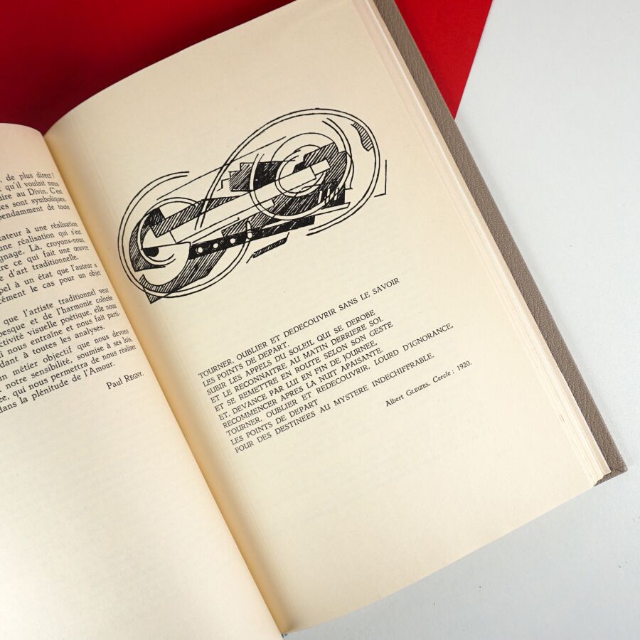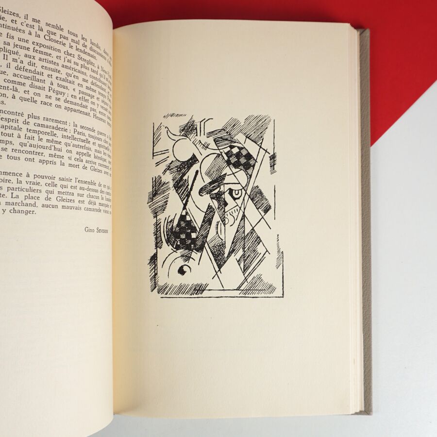 GLEIZES (Albert). Hommage. [Lyon], Atelier de la rose, 1954. In-8, demi-chagrin gris à bandes, dos à 2 nerfs, premier plat de couv. illustré et dos conservés (reliure moderne). 8 pl. hors-texte et illustrations en noir. Texte liminaire par Jean Cassou. Tirage à 500 ex. sur vélin de Condat (n° 281). Bel ex.