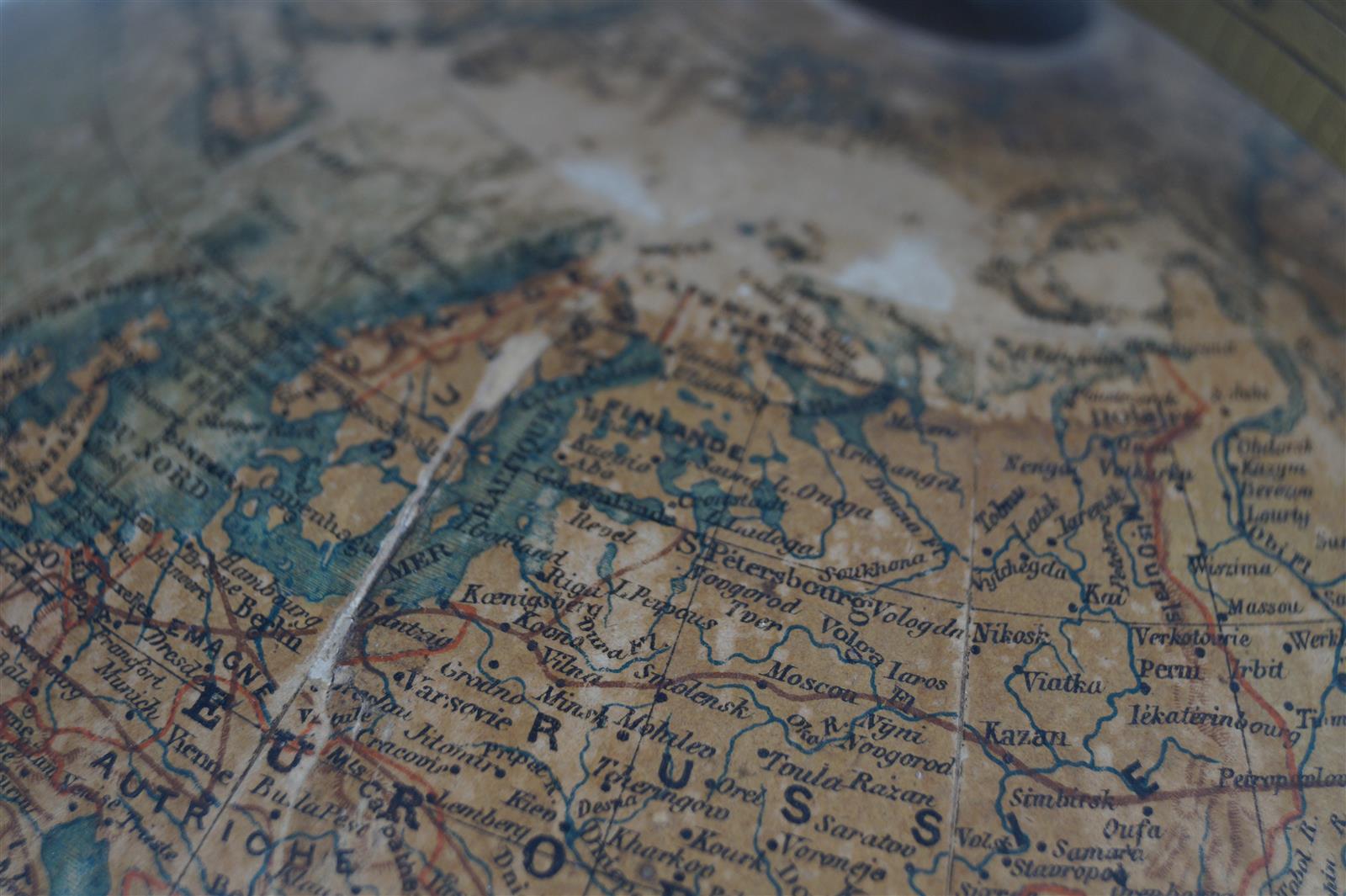 Globe terrestre signé Lebègue, piétement en bois noirci, fin 19e siècle, H. 48 cm