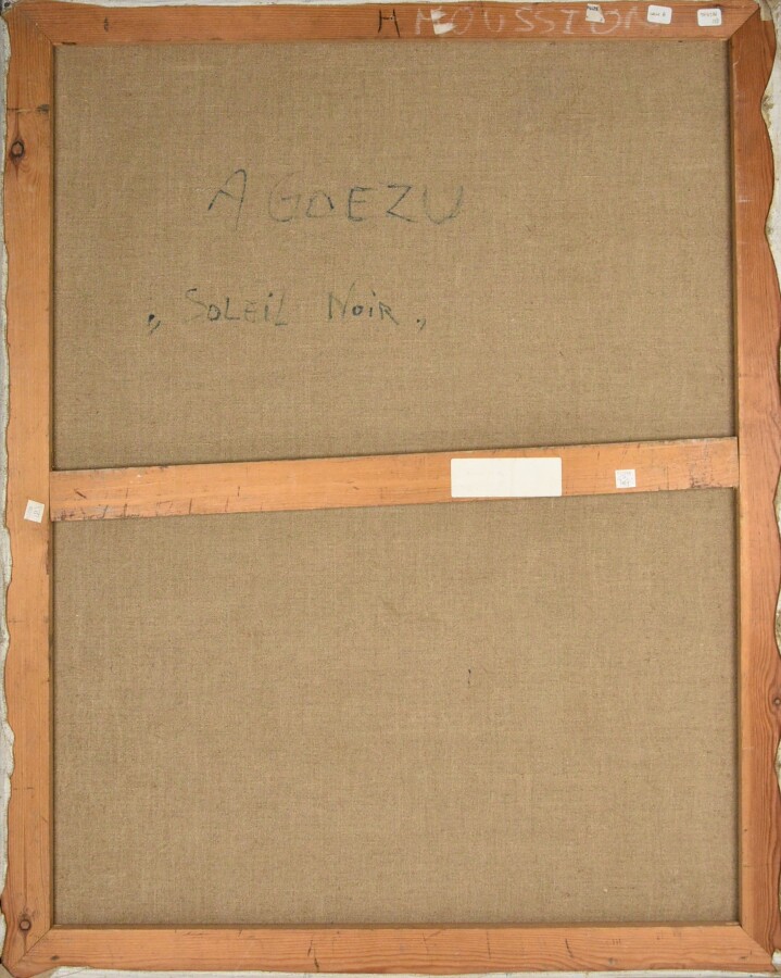 GOEZU (XXe), "Soleil noir", huile sur toile signée en bas à gauche, 92 x 74 cm.