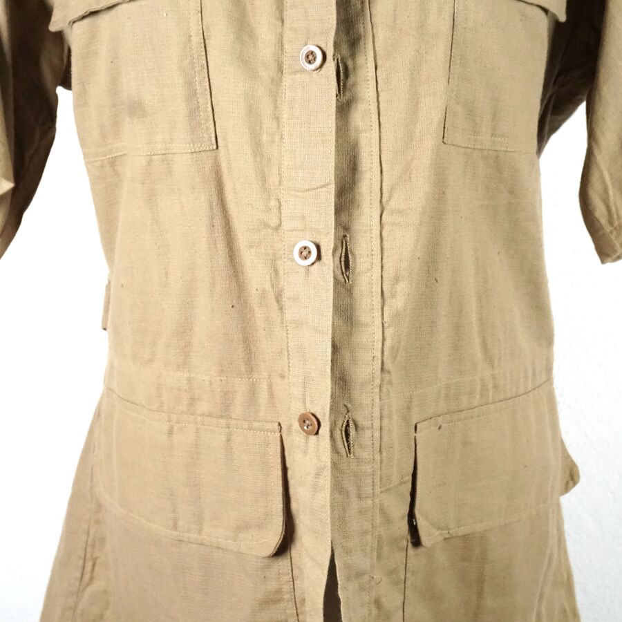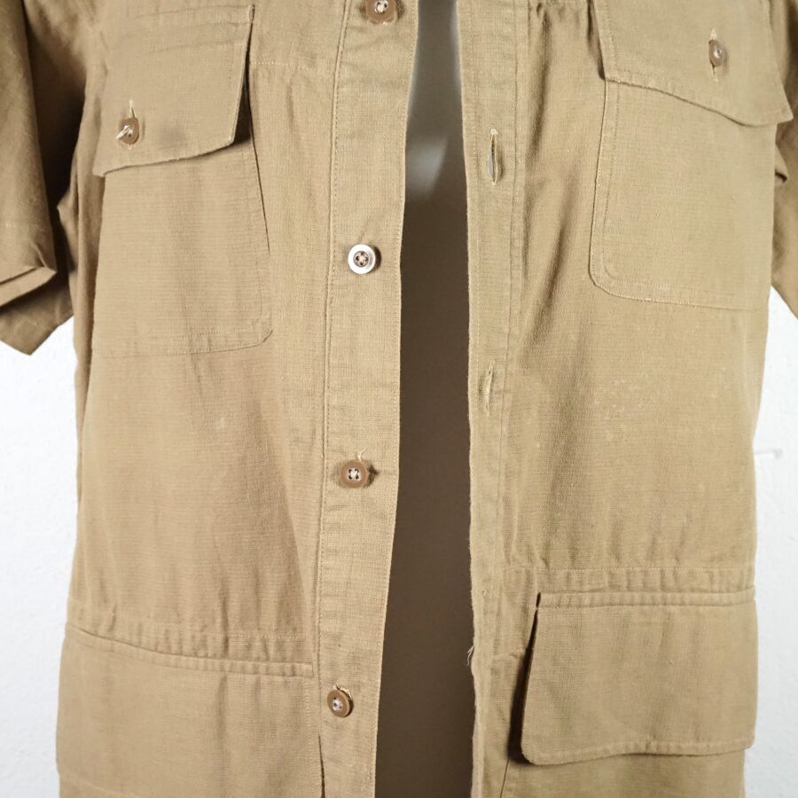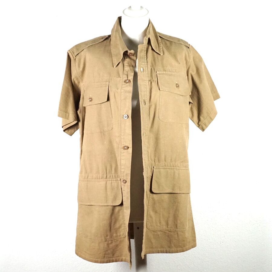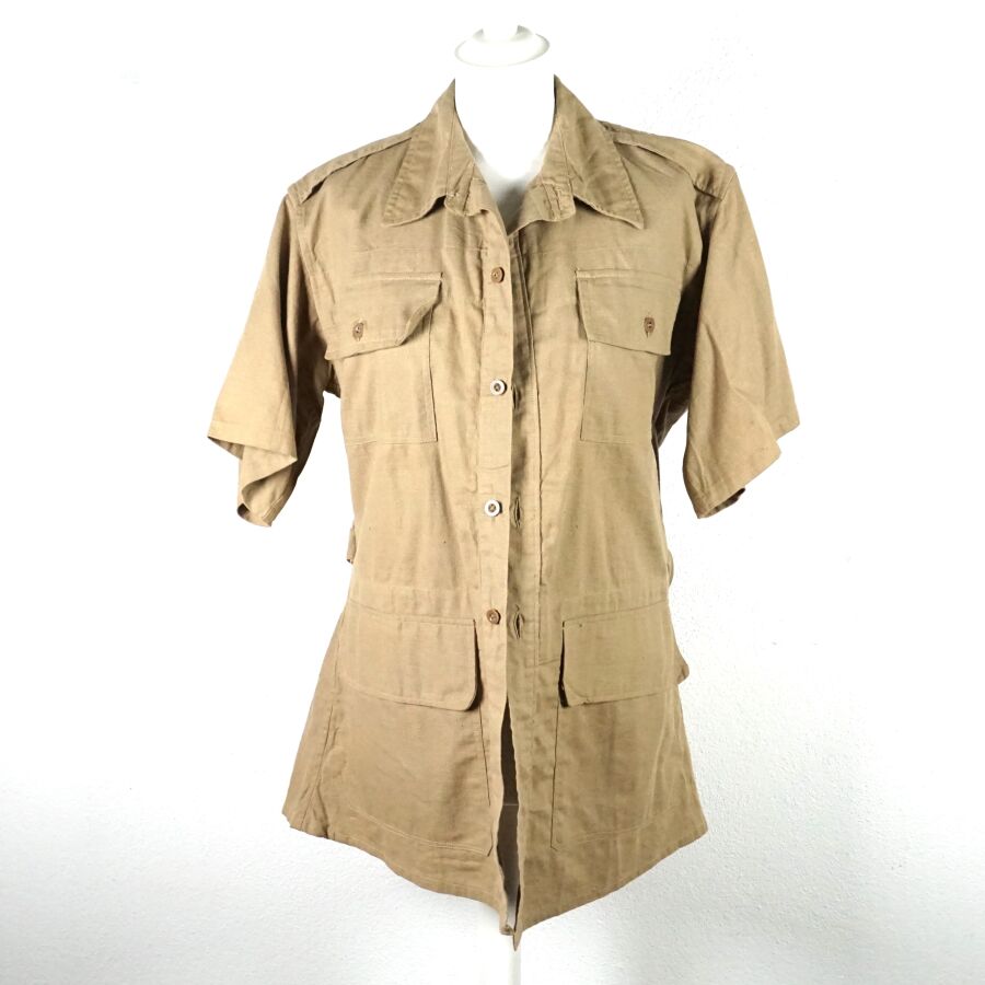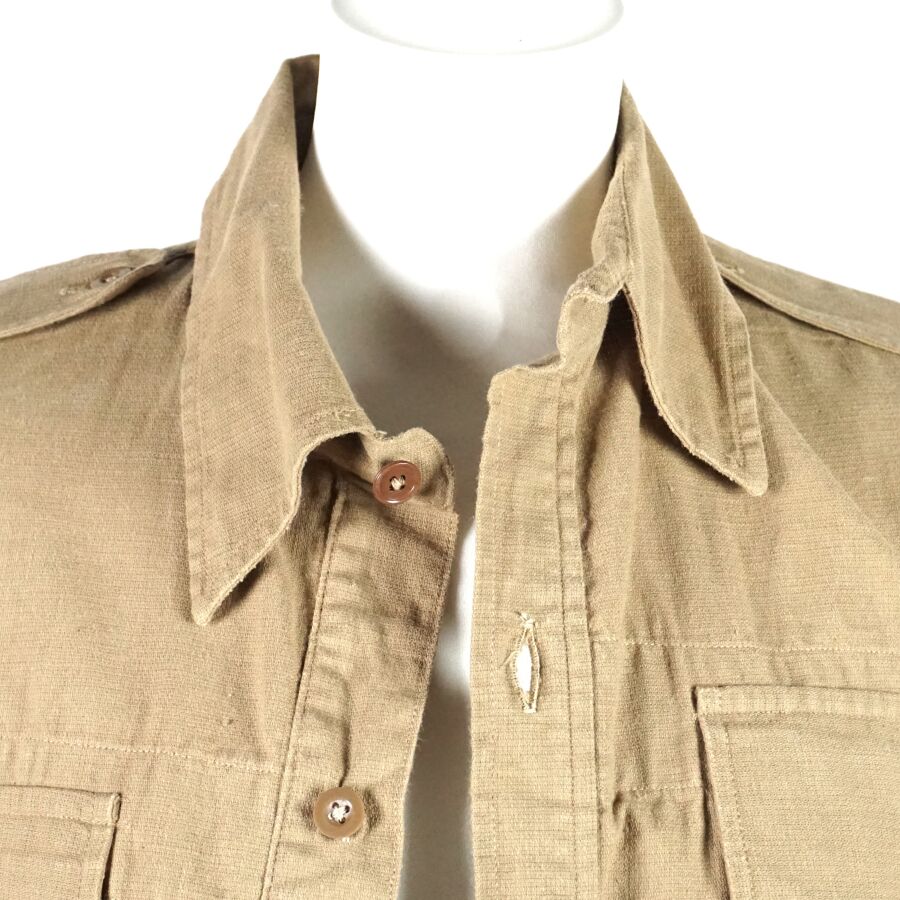 GRANDE-BRETAGNE - RAF - DEUX CHEMISES A MANCHES COURTES, en coton beige, 4 poches, de taille 3 et datée " 1942 " pour l'une et de taille 4 datée " 1943 " pour la seconde, Seconde Guerre Mondiale ", BE.