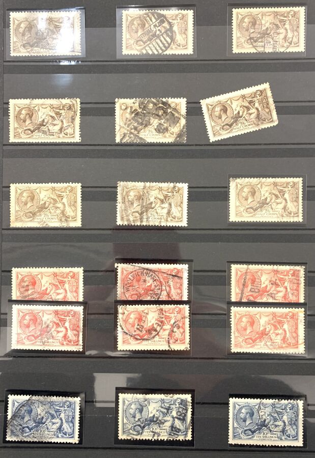 GRANDE-BRETAGNE : Sur 5 grandes feuilles d'album et en classeur, sélection de timbres classiques dont nombreux signés, très bon état général. On annonce une côte suppérieur à 33000 euros.